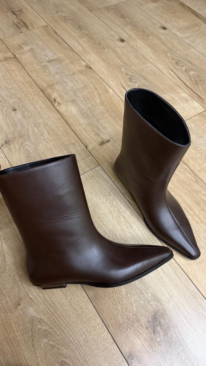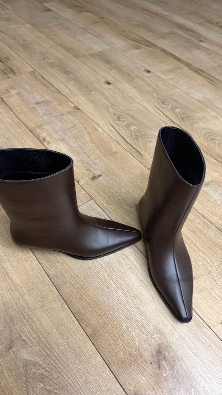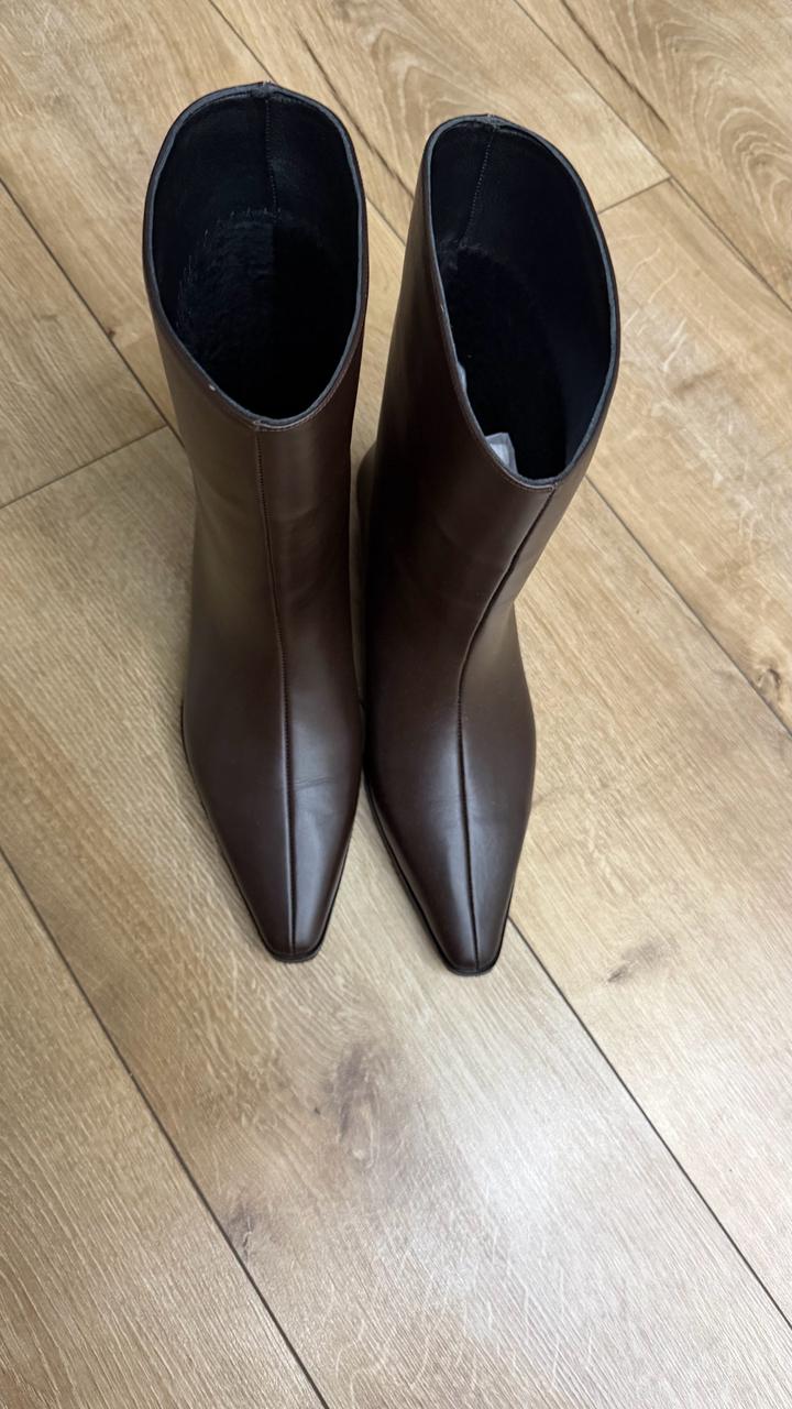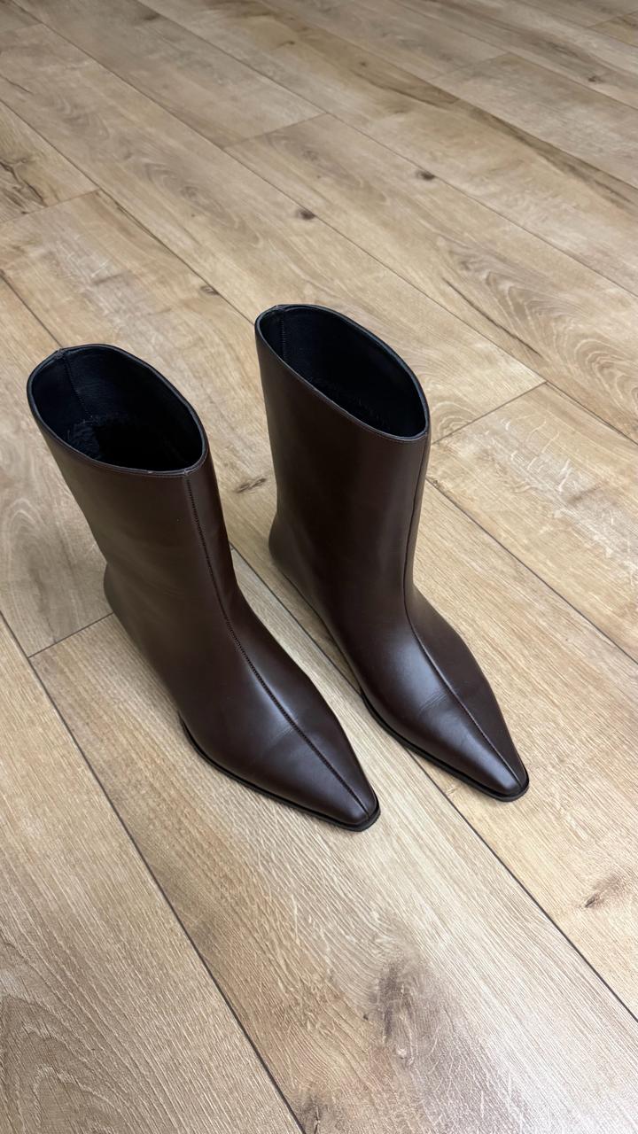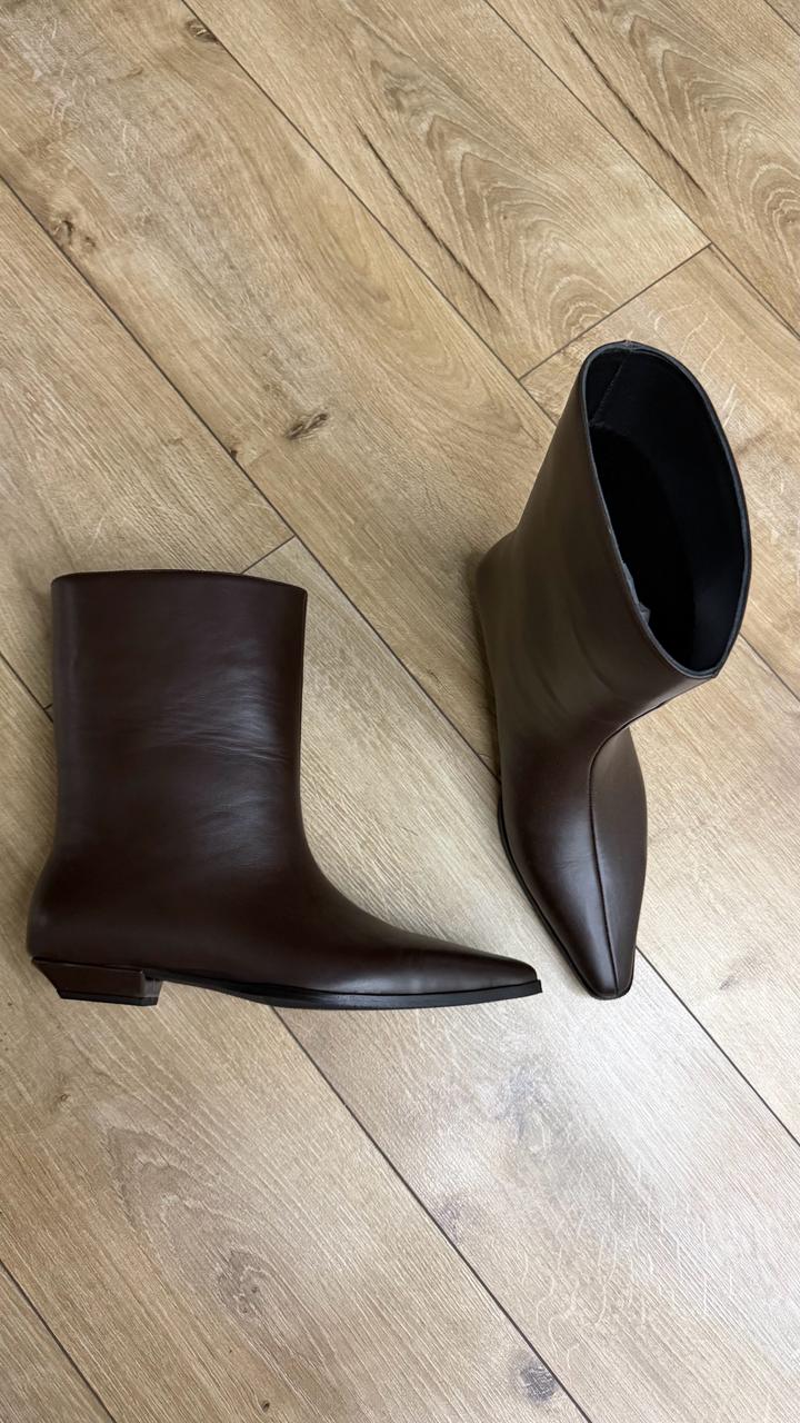 Элегантные женские полусапожки в благородном шоколадном цвете. Современный минималистичный дизайн с острым носом — выглядят дорого и стильно. Состояние: абсолютно новые Артикул: 542946