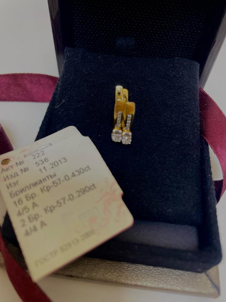 Бриллиантовые серьги, желтое золото. Все характеристики на фото. Любые проверки Артикул: 542963