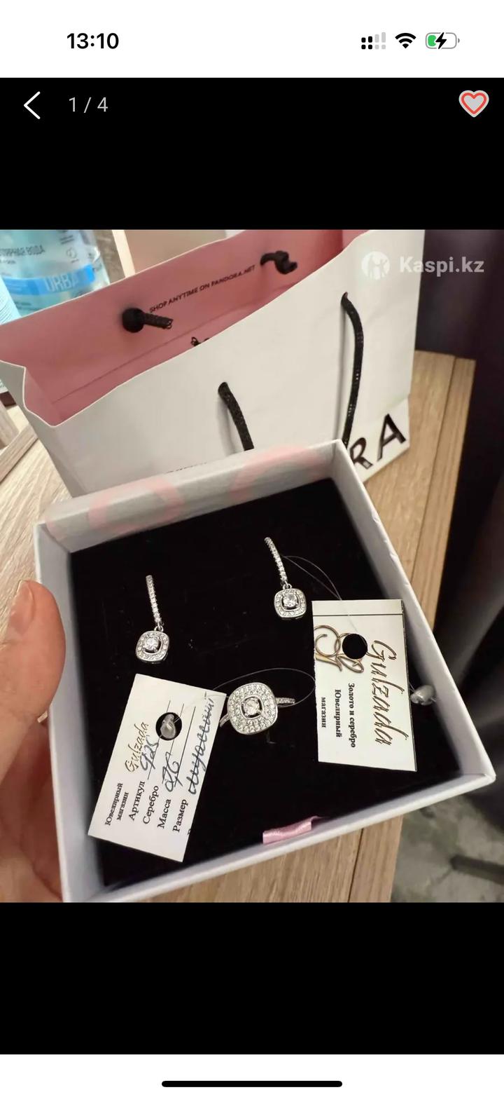 В комплекте серьги и кольцо от бренда Pandora. Серебро. Кольцо примерно размер 17. На подарок отличный вариант. Артикул: 542994