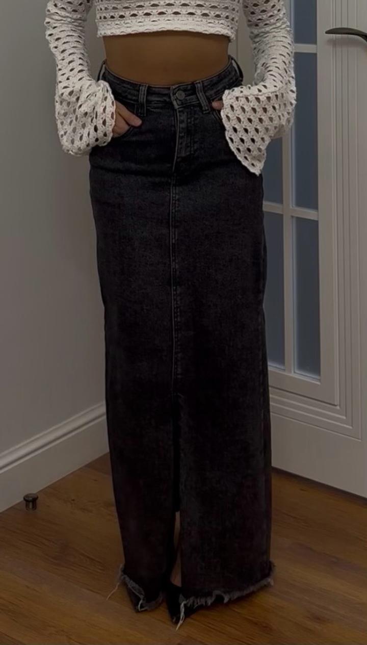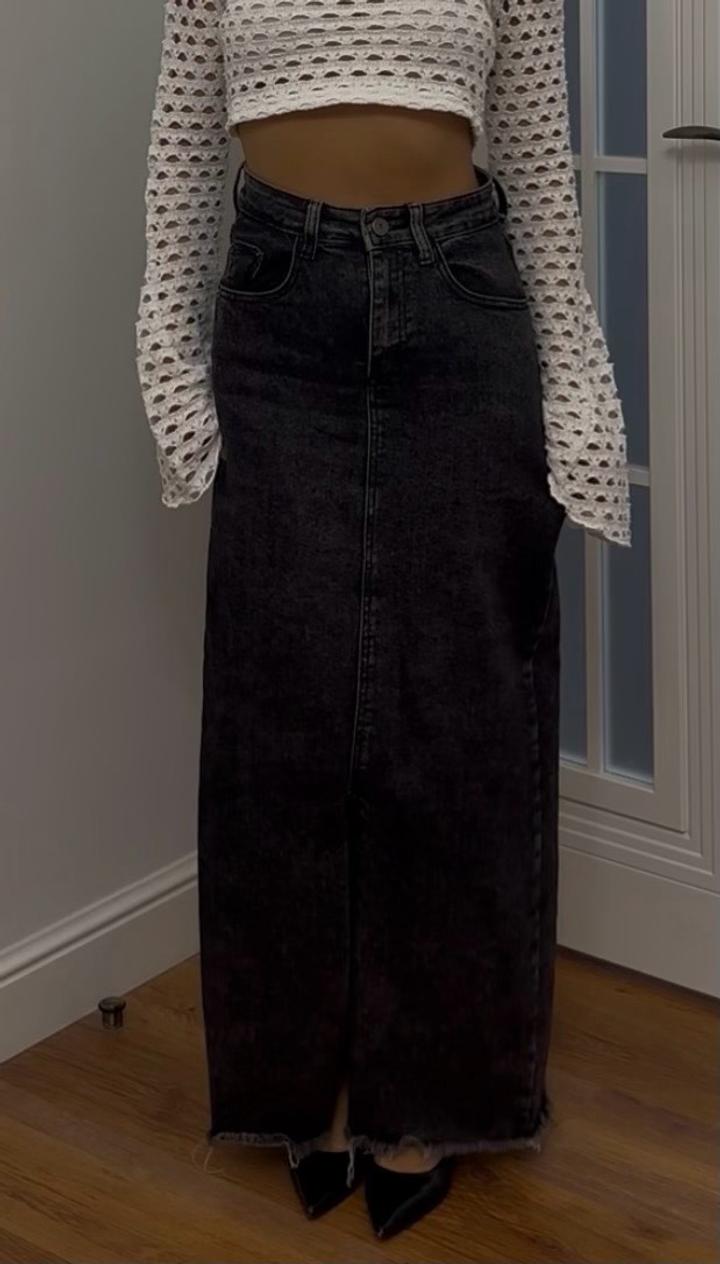 Стильная джинсовая юбка миди в трендовом тёмно-сером оттенке с вырезом спереди 🖤 Плотный деним хорошо держит форму, при этом комфортен для повседневной носки. Прямой крой визуально вытягивает силуэт, а разрез спереди добавляет лёгкости и женственности. Отлично сочетается с топами, рубашками и базовыми футболками — универсальная вещь на лето и межсезонье. Артикул: 543009