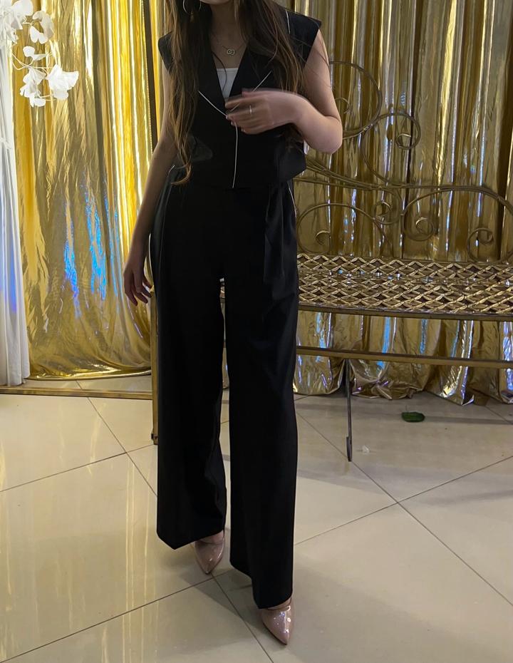 Стильный черный костюм двойка (жилетка + палаццо) 🖤 💎 Размер: (S/M деп нақтылап қоясың) 💎 Состояние: (жаңа / 1-2 рет киілген) 💎 Комплект: жилетка + брюки палаццо 💖 Бұл костюм: – өте стильный, минималистичный образ 🔥 – шалбар палаццо аяқтарды ұзын әрі стройный көрсетеді – жилетка фигураны әдемі подчёркивает – офиске де, кешке де, күнделікті стильге де универсал 🖤 Қара түс — әрқашан трендте және дорого смотрится Артикул: 543139