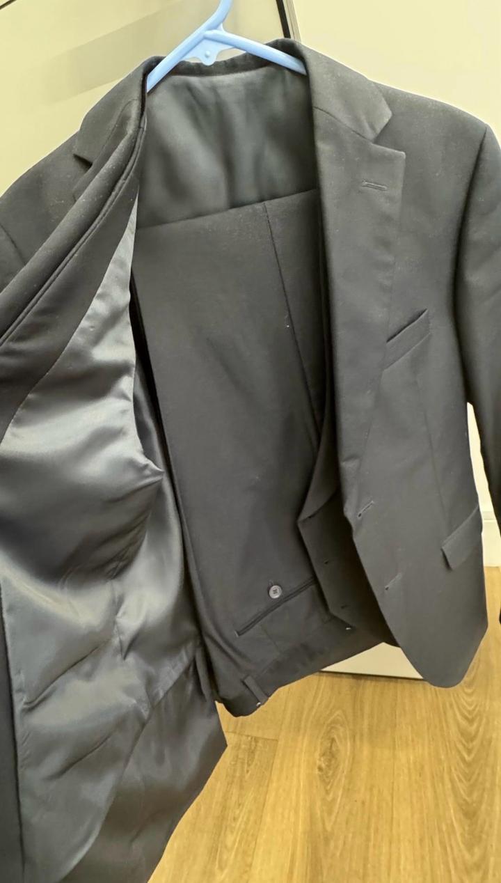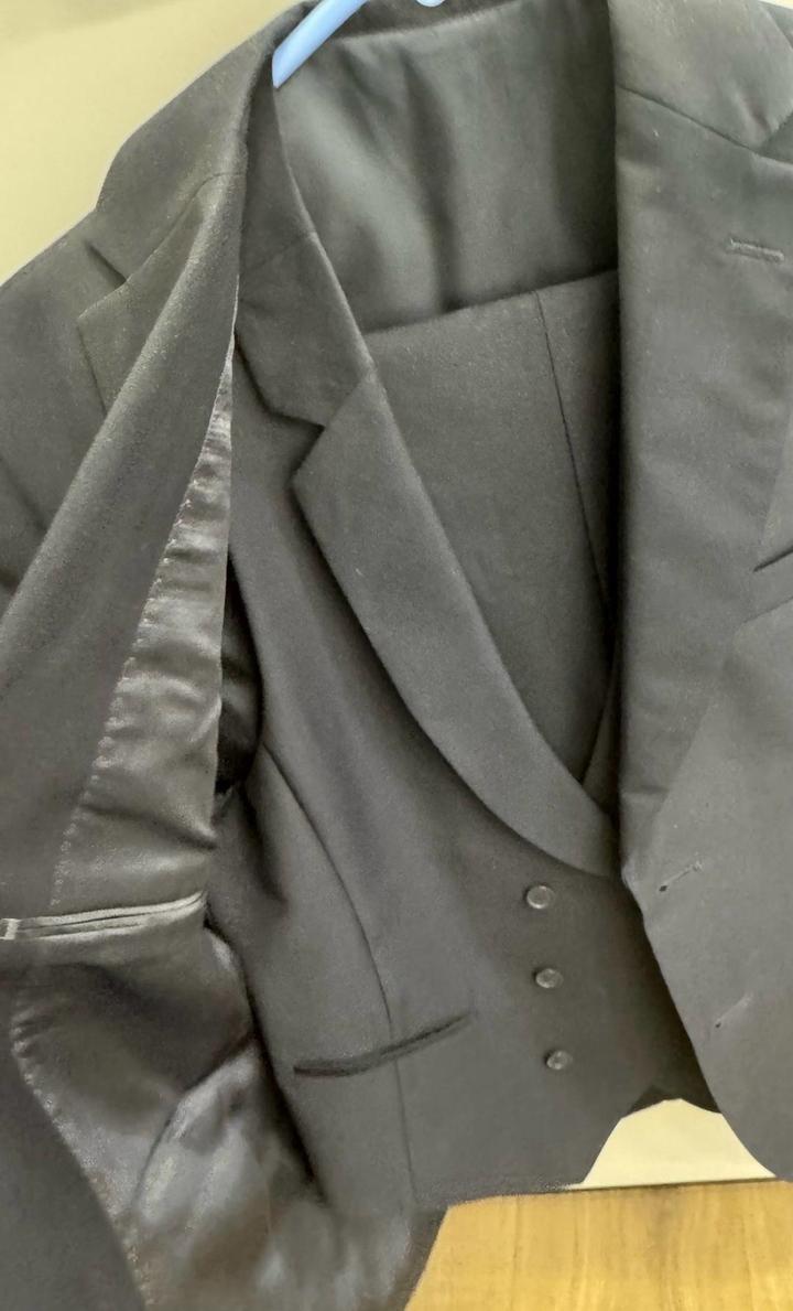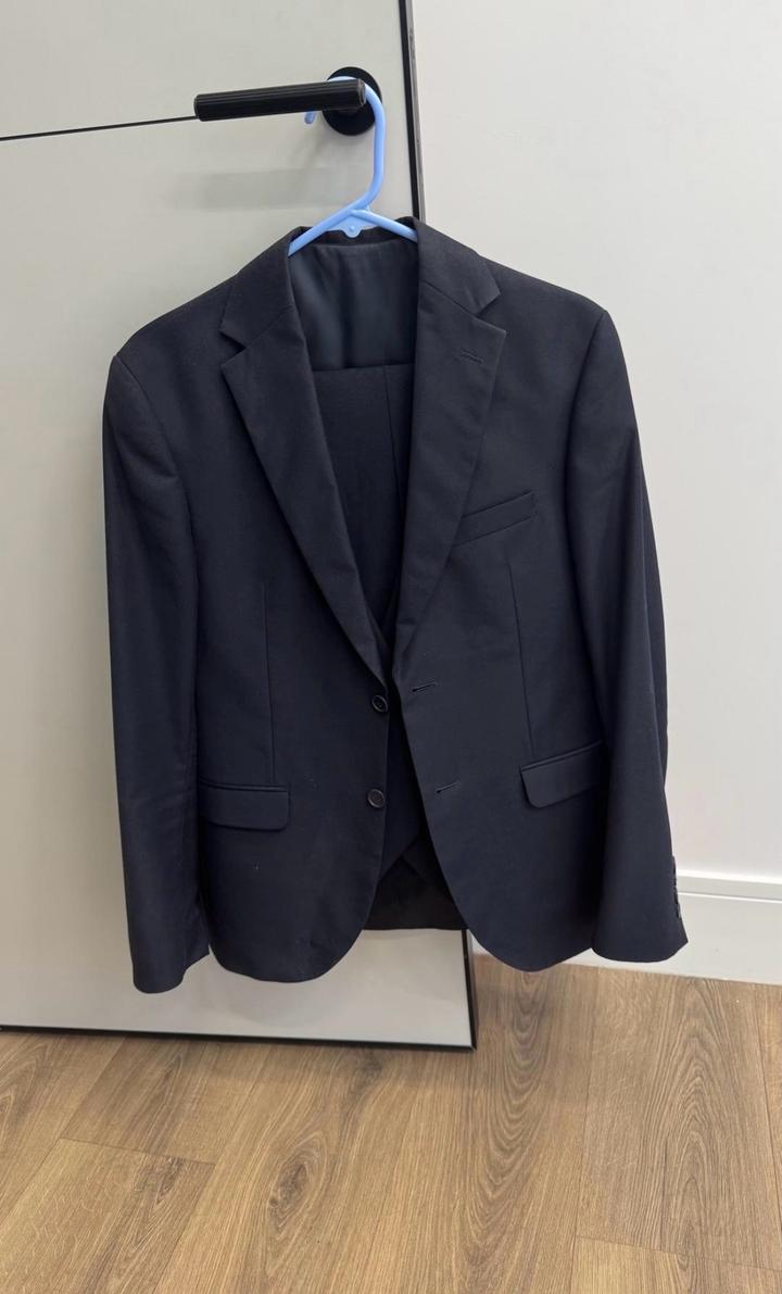 Турецкий костюм, хорошего качества. Матовая ткань. Размер 46-48. Темно синего цвета/ближе к черному. Не подошел по размеру. Артикул: 543249