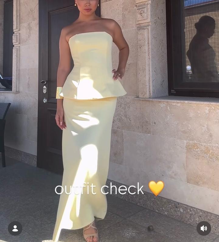 Топ + юбка длины макси нежно желтого оттенка, носила только один раз на мероприятие, в идеальном состоянии размер S, подойдет для девушек кто носит М но вверх маленький (грудь) Артикул: 543299