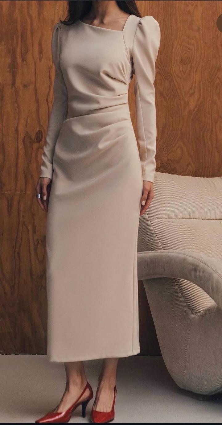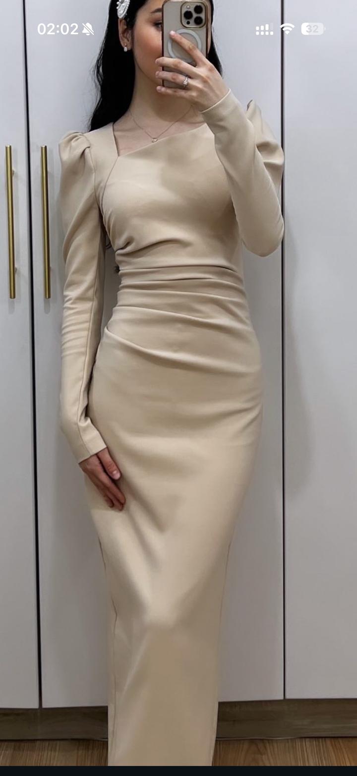 Платье по фигуре. Сзади есть небольшой разрез до уровня колен. Рукава длинные. Спинка закрытая. На мой рост 163 платье до щиколоток. Артикул: 543336