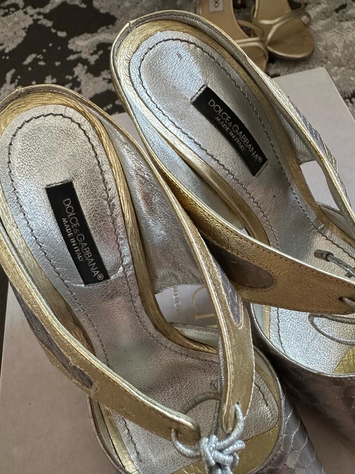Продам босоножки от Dolce&Gabbana, оригинал. В отличном состоянии, единственное надо будет потом поменять набойки! Цвет серебро+золото! Размер 35-36 Артикул: 543552