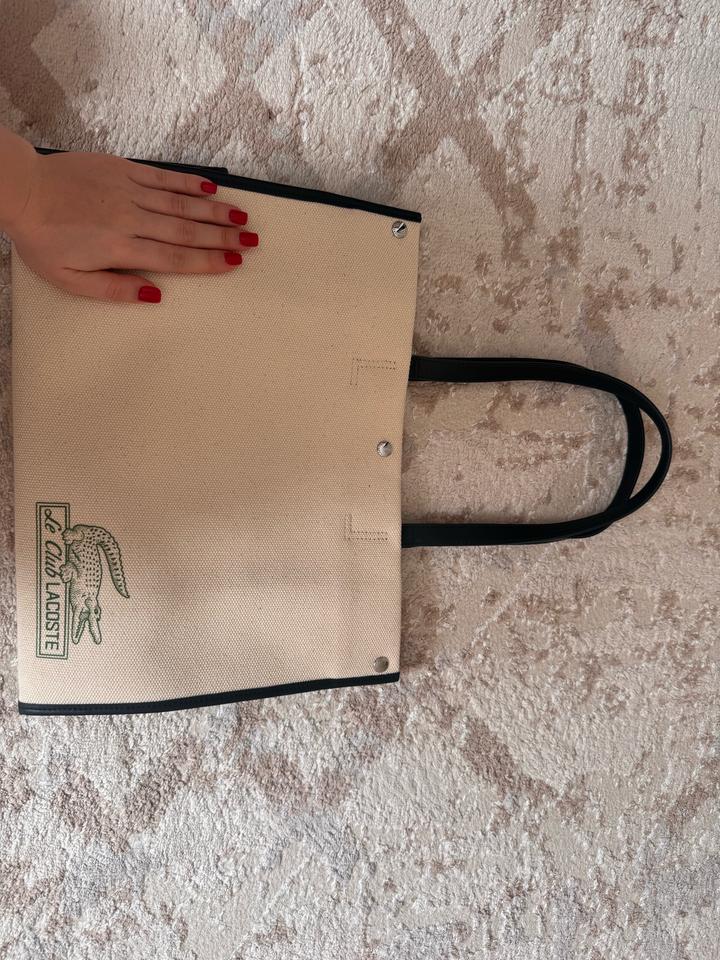 Продаю шопер лакосте. Размер не знаю как на фото. Очень вместительный и большой. Можете на сайте или в пинтересте посмотреть.Носила 2 раза во Вьетнаме. Покупали за 130тыс . Продаю за 55. Алматы. Артикул: 543589