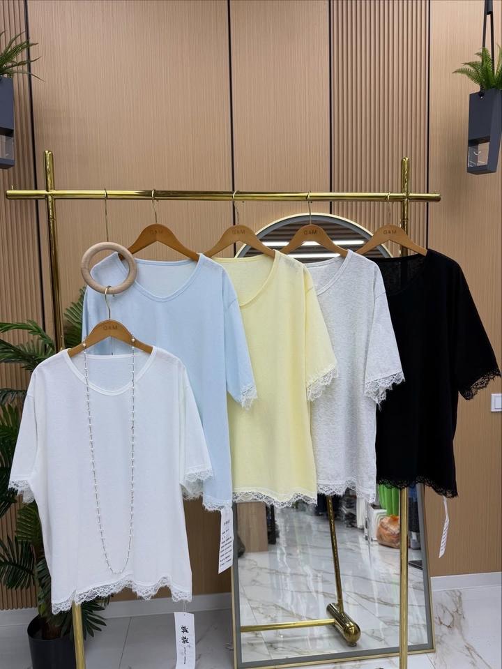 Очень популярные футболки с гепюром — нежные оверсайз 😍✨ Легкая и стильная модель, идеально подойдет для повседневных образов. Размеры: 46–54 стандарт Артикул: 543612