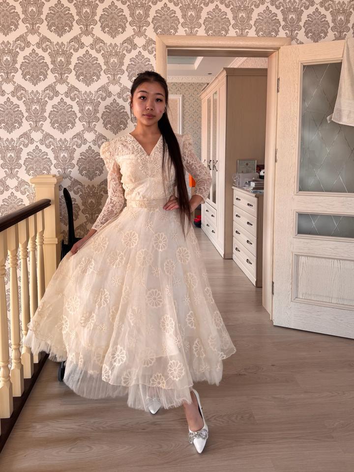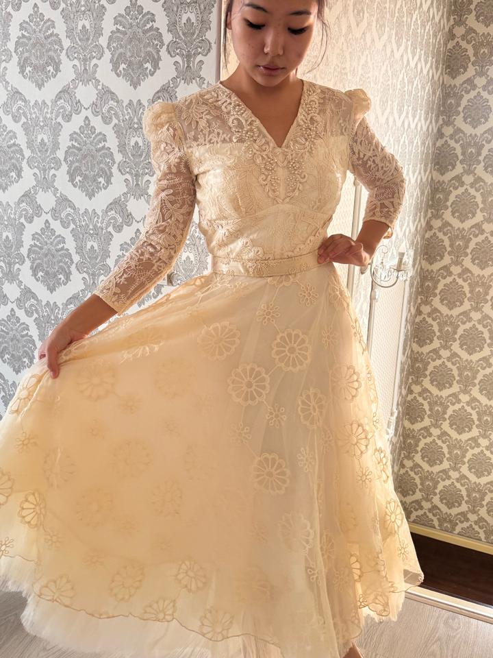 Шикарное платье в стиле CHANEL молочного цвета с бисером, кружевом и объемной юбкой. Очень нежное, нарядное и эффектное, вживую смотрится еще красивее. Подойдет на узату, никах, фотосессию, день рождения и другие торжественные мероприятия. В отличном состоянии. Артикул: 543633