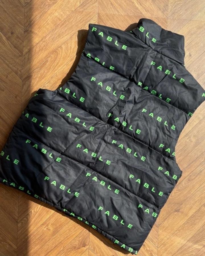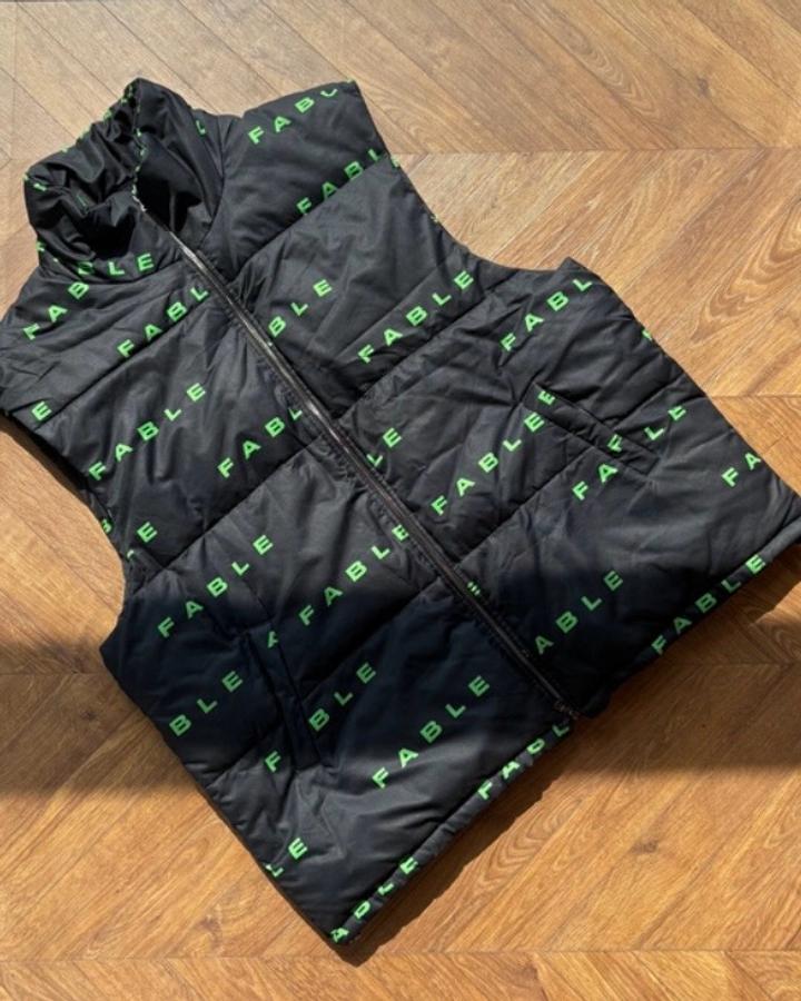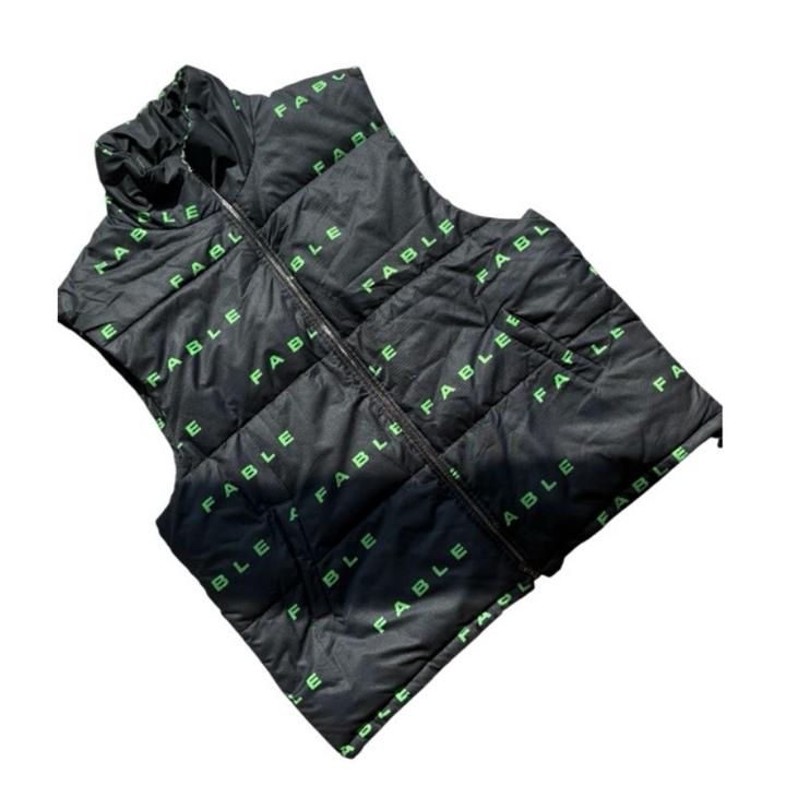 Оверсайз жилет на эко-пухе Застёжка: молния по всей длине. Есть два боковых кармана на молнии, один внутренний карман. Универсальный фасон - подойдёт для города, прогулок или как стильный акцент в кэжуал-образе. Московский бренд FABLE, жилет в стиле унисекс в яркой цветовой гамме. По всей жилетке в хаотичном порядке расположено название бренда, нанесенное краской, контрастирующей с цветом жилета. Артикул: 543868