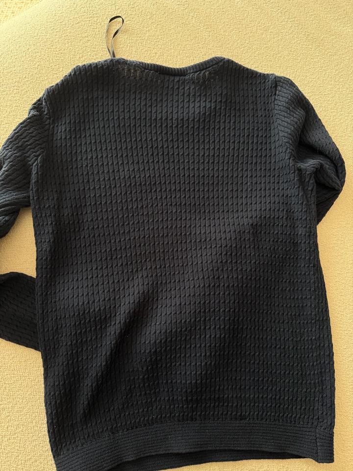 Темно синяя кофта, удобная Размер S, но у меня М и все равно он свободный и при этом облегает Артикул: 543885