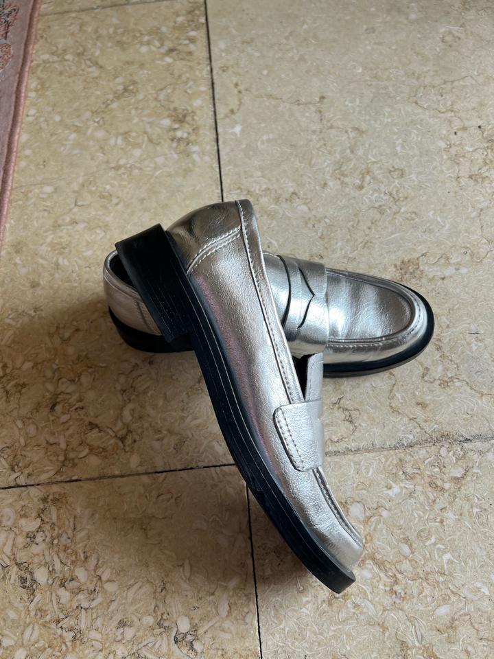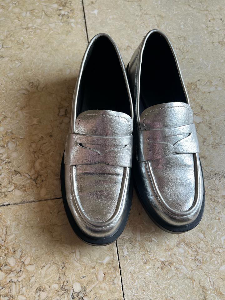 Серебристые лоферы, были в носке пару раз. Артикул: 543941