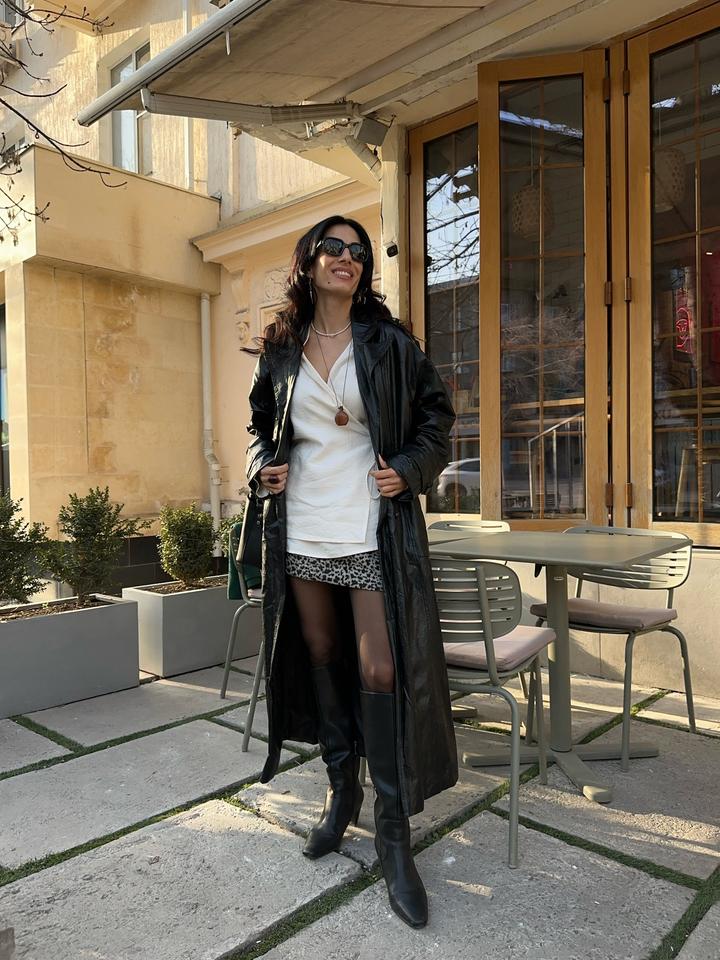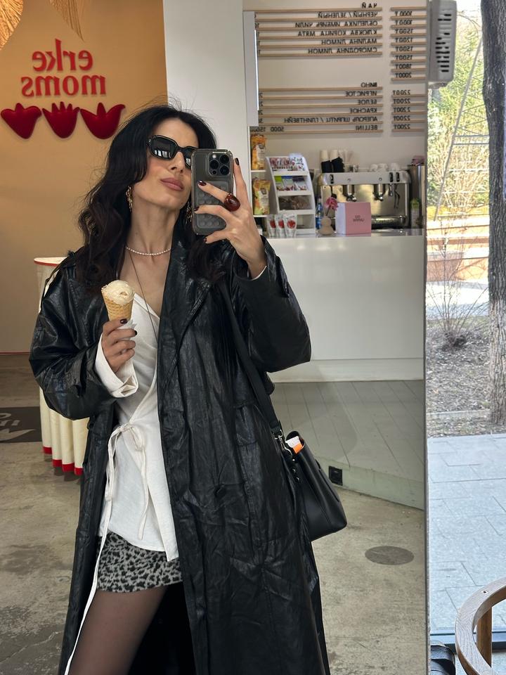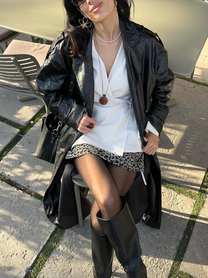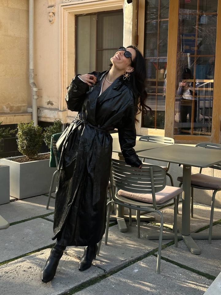 Тренч из искусственной кожи, состояние хорошее только местами отлетели пуговицы Артикул: 543945