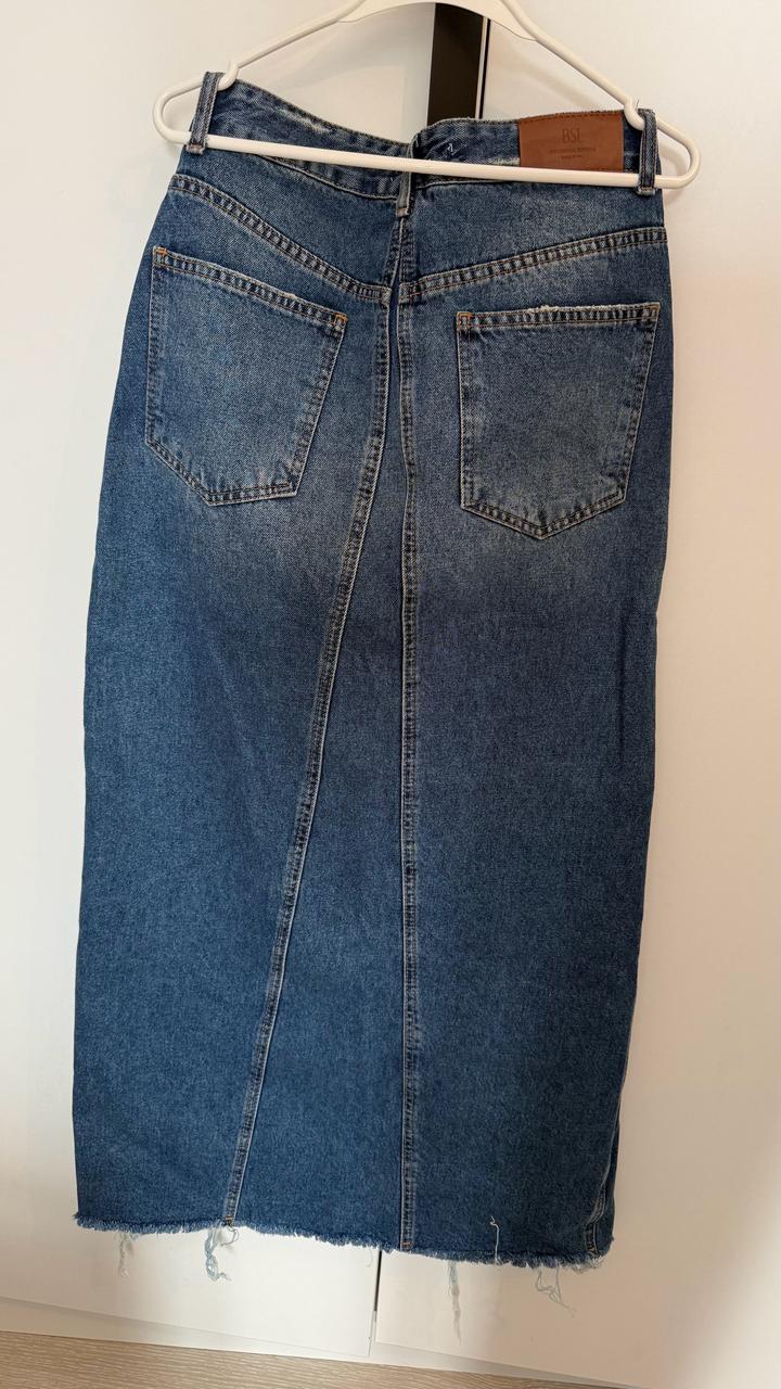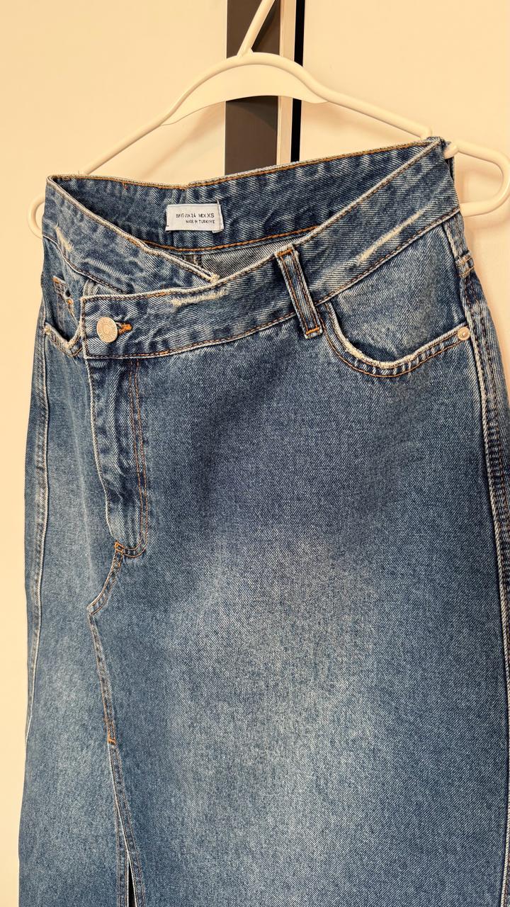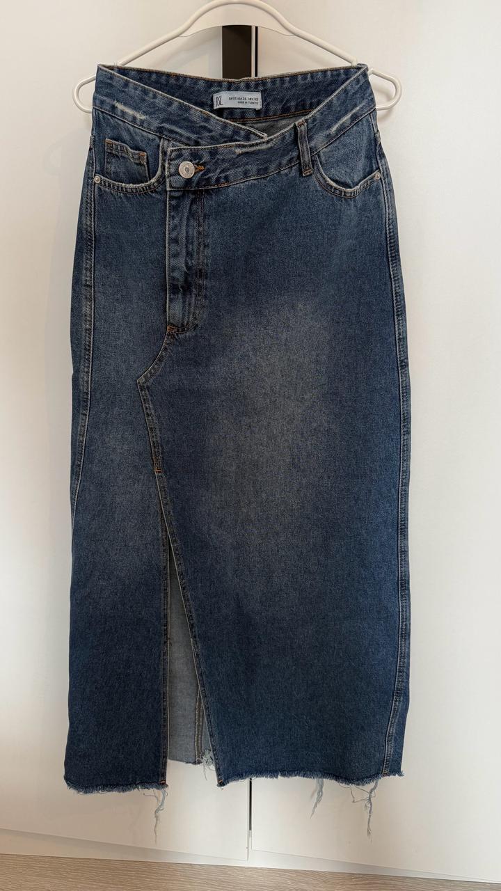 Джинсовая юбка миди Стильная юбка из плотного денима 🔥 Актуальный прямой крой, высокая посадка Разрез спереди — удобно ходить и выглядит очень круто Низ с необработанным краем (трендовый эффект) Артикул: 544026