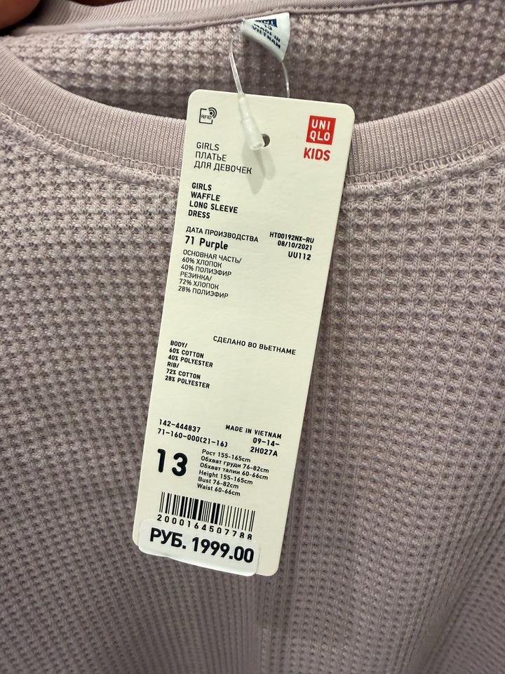 Новое хлопковое платье Uniqlo с биркой на девочку возрастом 13 лет. Артикул: 544160