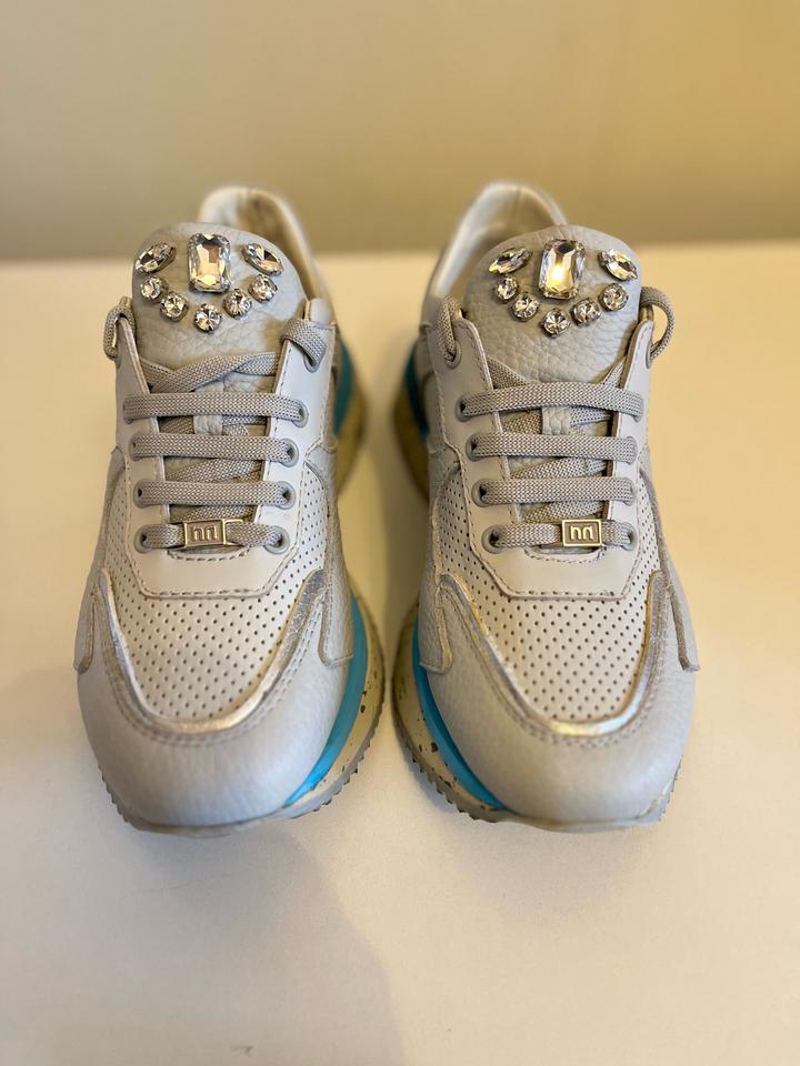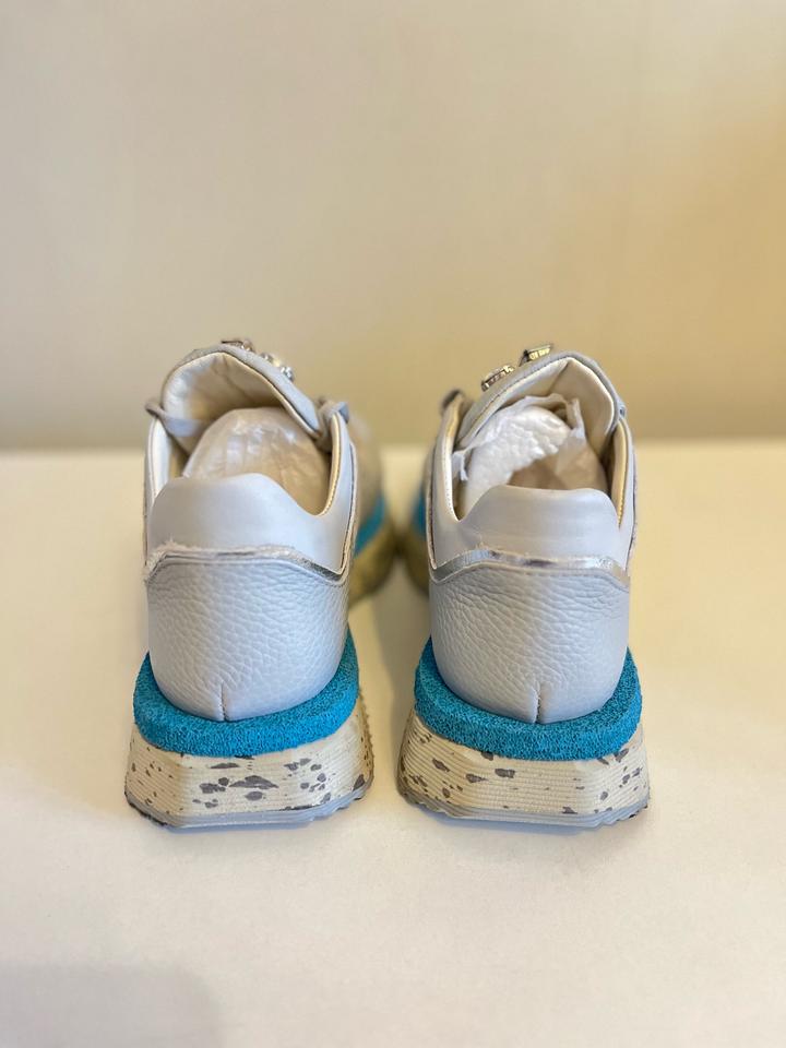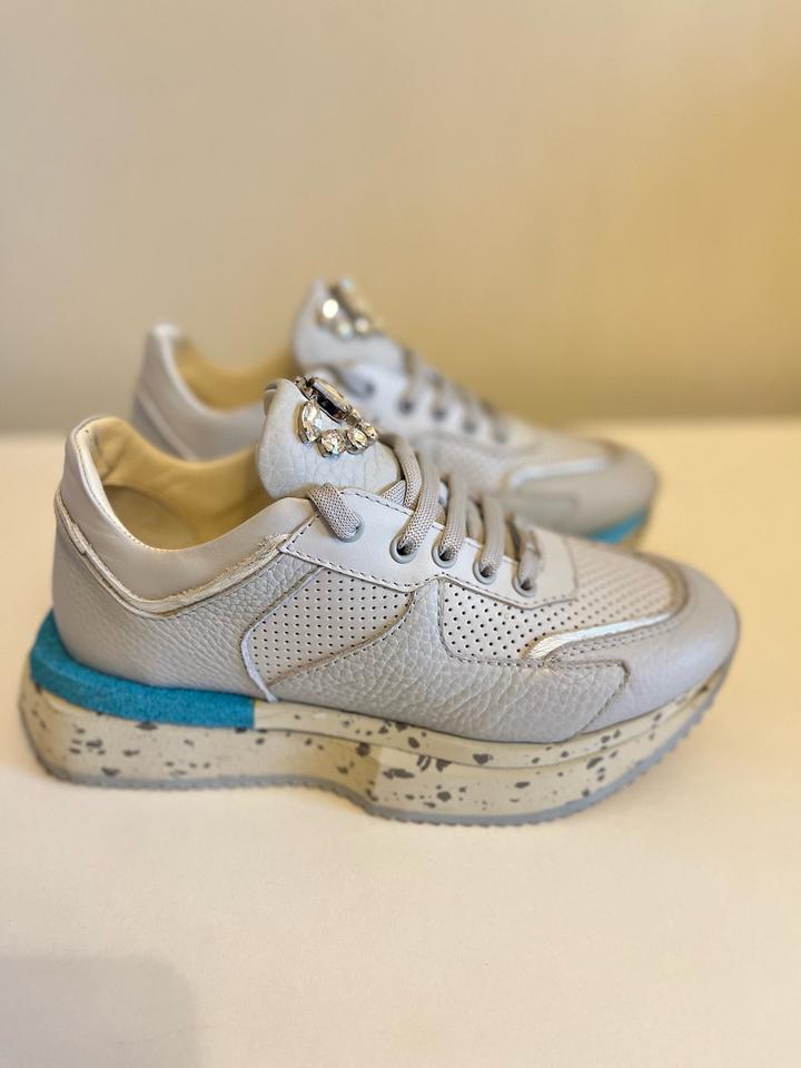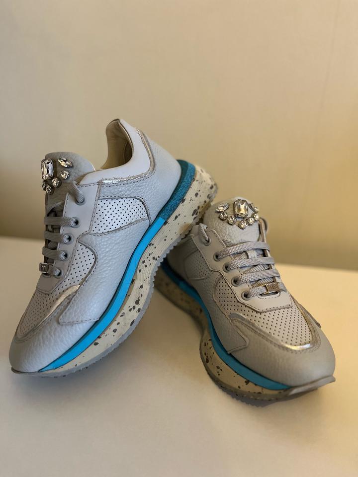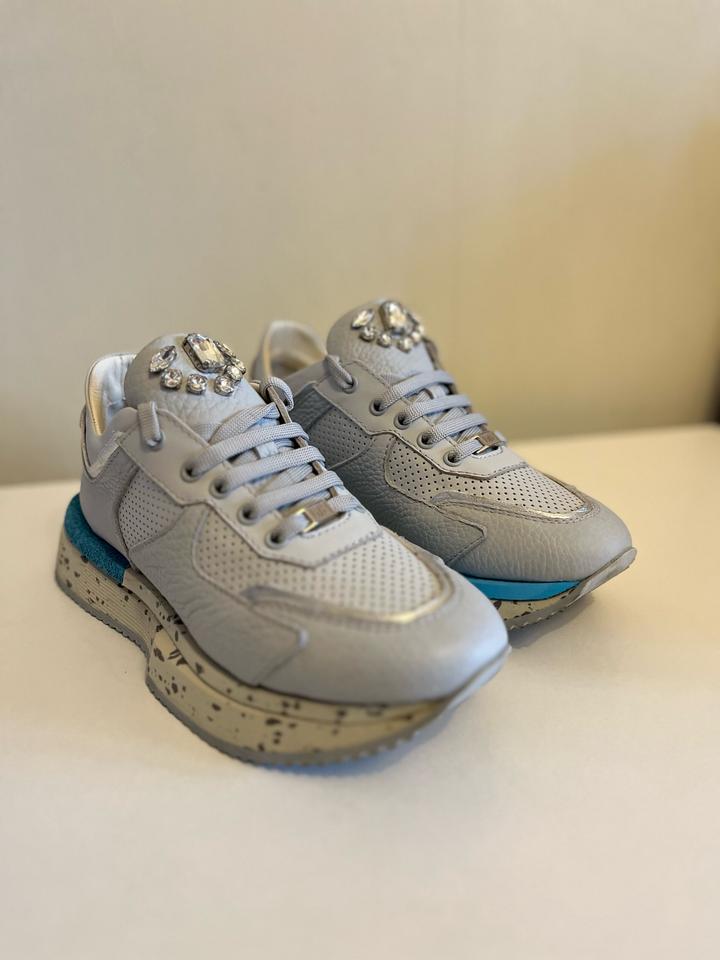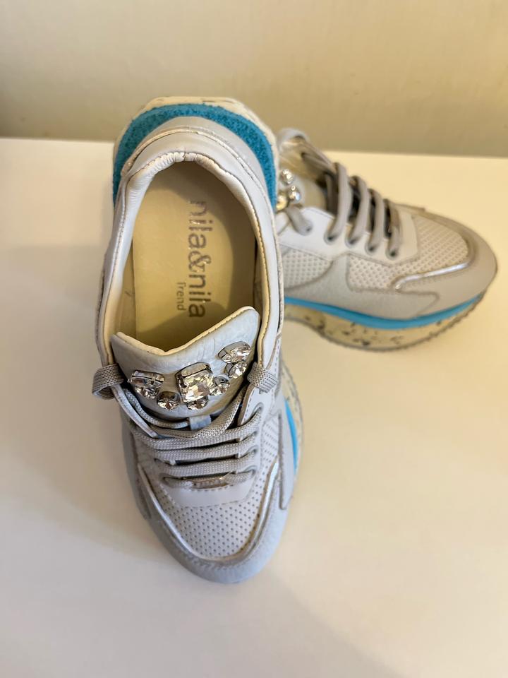 Серо-голубые кроссовки итальянского бренда nila&nila. Размер 37. Натуральная кожа. Сквозная перфорация. Артикул: 544201