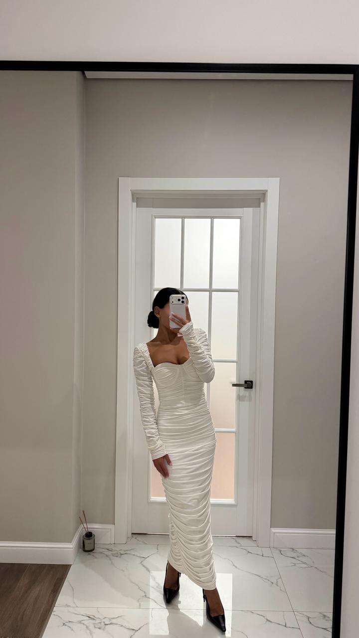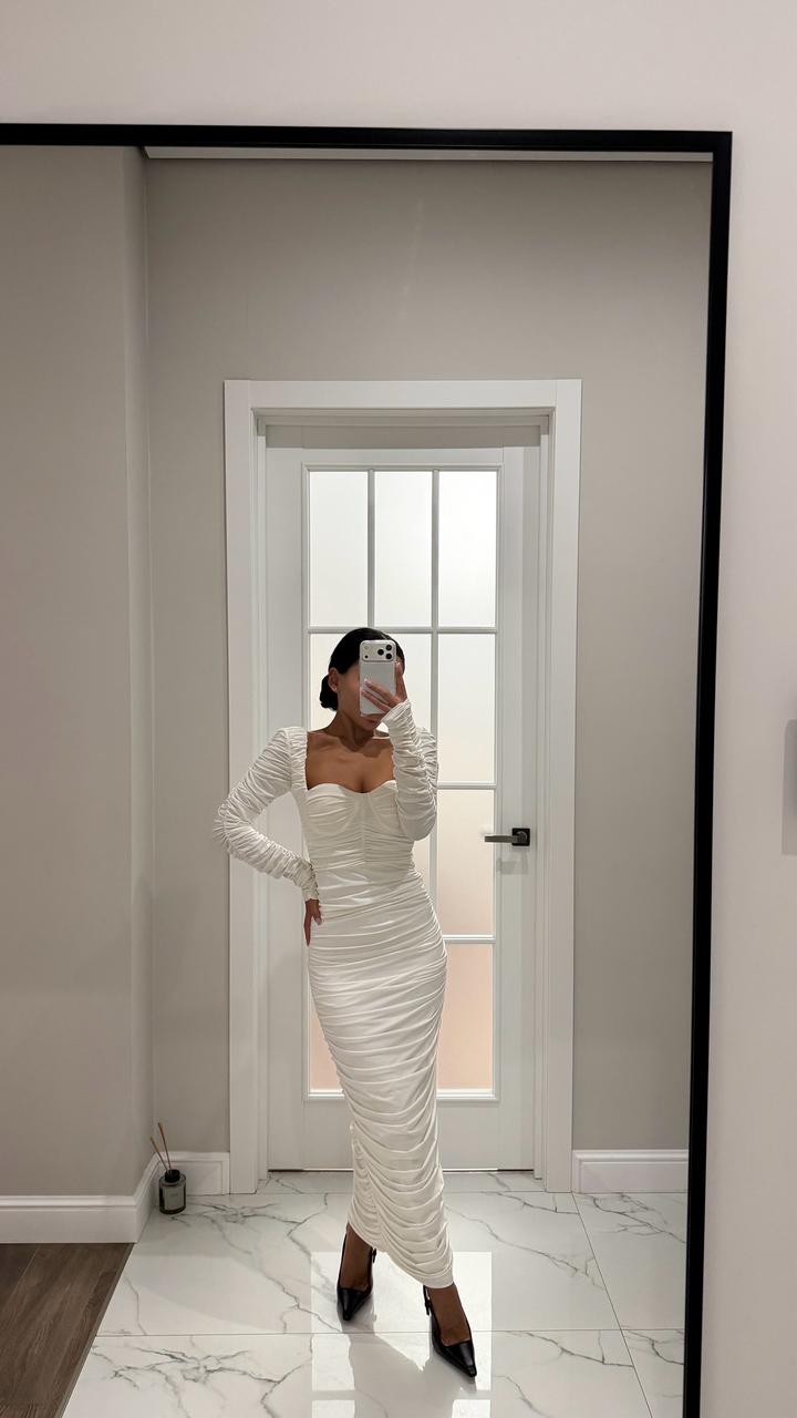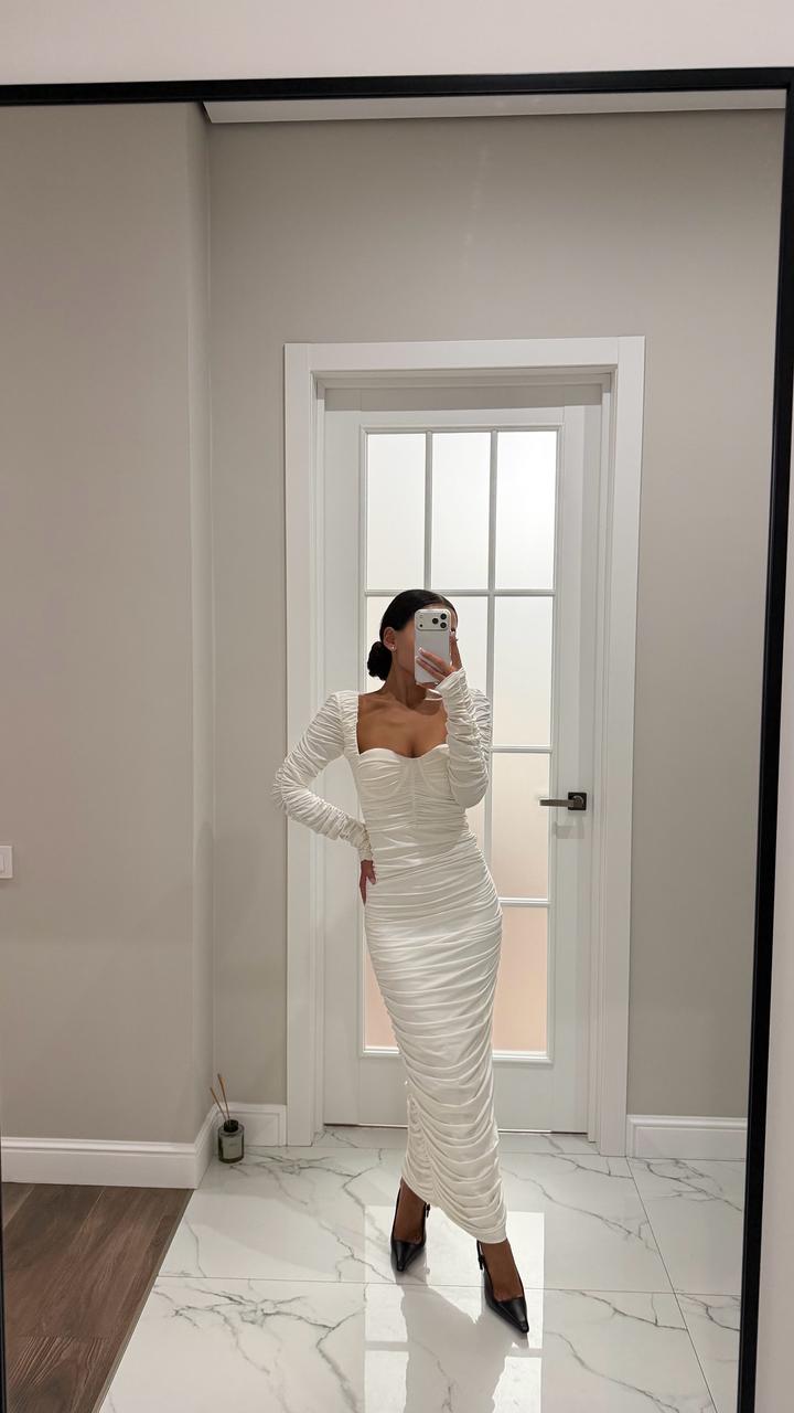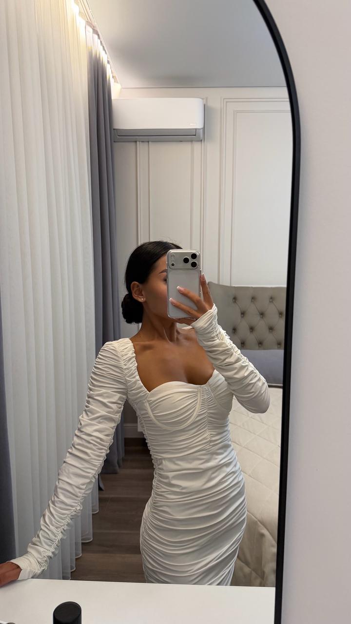 Белое платье в обтяг, драпированное, безумно красиво сидит по фигуре, размер хс, с Качество идеальное, одевалось 1 раз Артикул: 544229