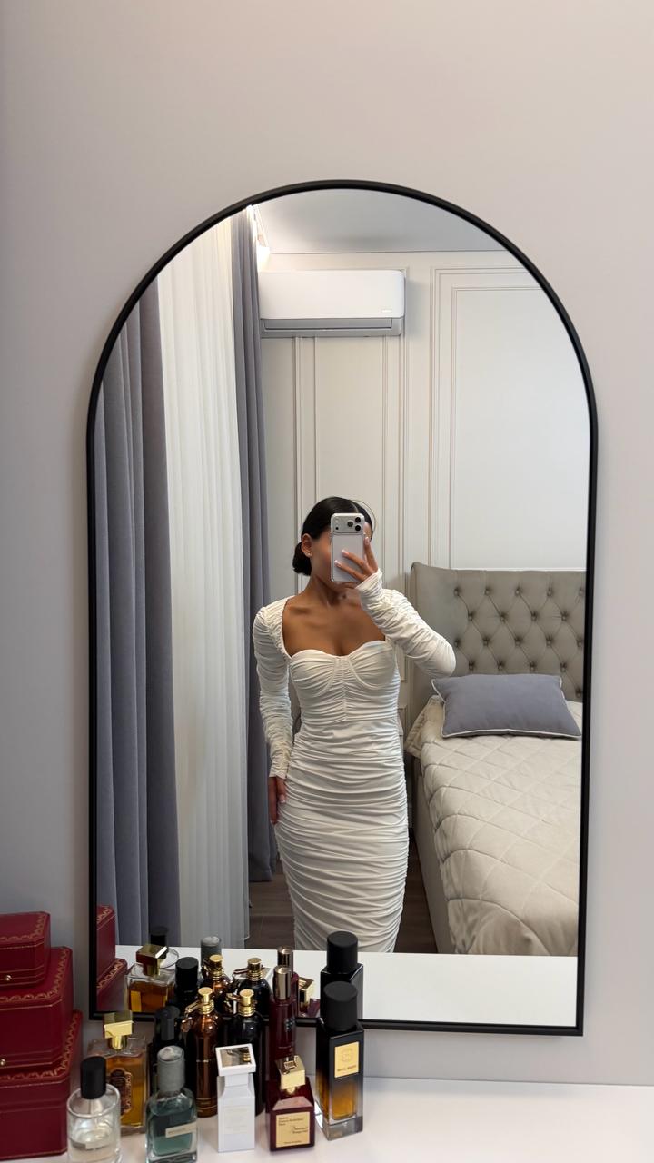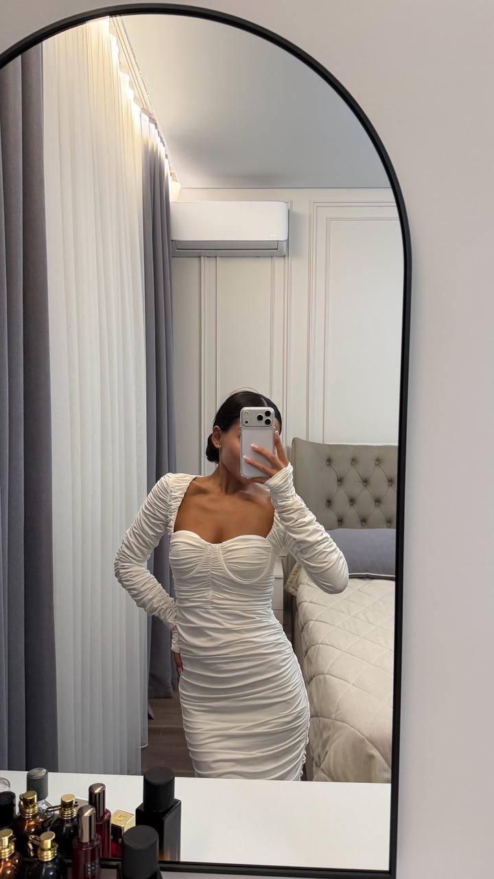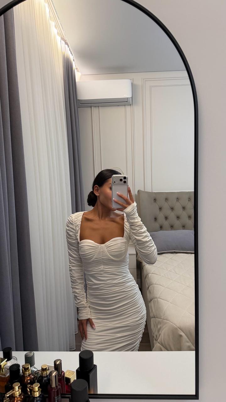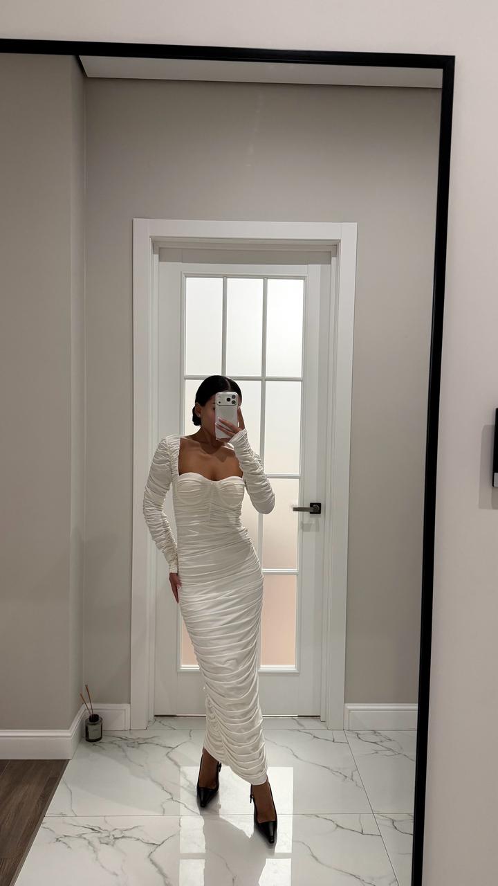 Белое платье в обтяг, драпированное, безумно красиво сидит по фигуре, размер хс, с Качество идеальное, одевалось 1 раз Артикул: 544229