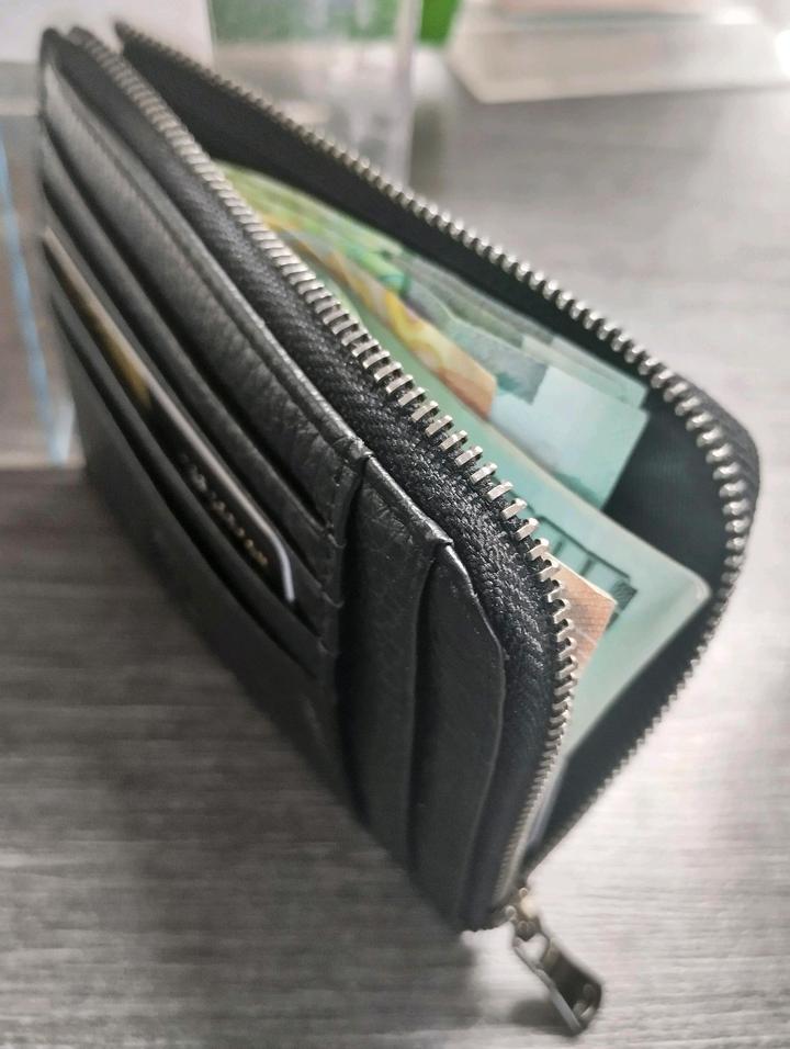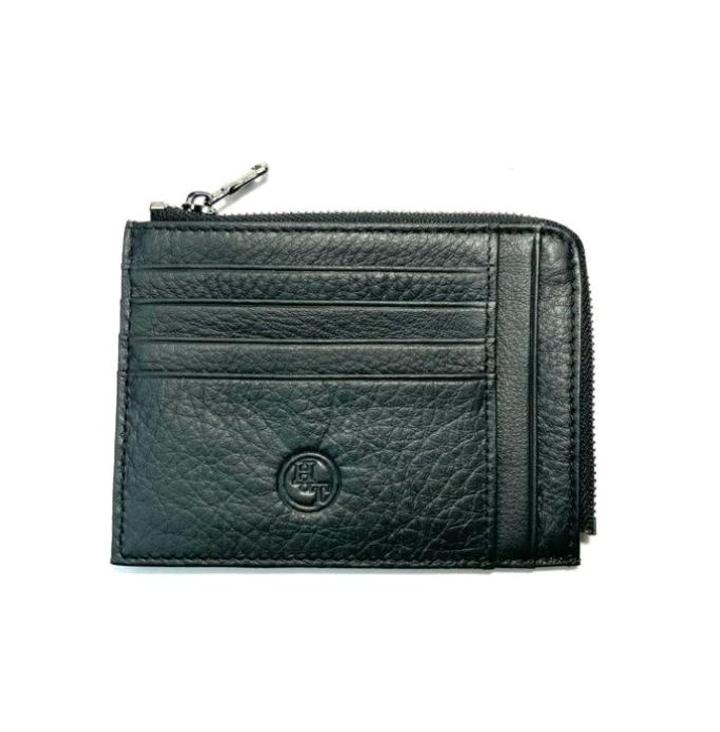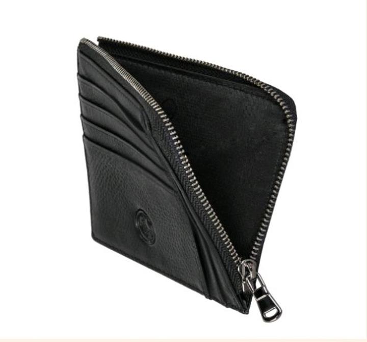 Картхолдер чёрного цвета из натуральной кожи. Размер 10*12,5. Множество отделений для карт. Отдел на молнии где можно держать наличку, монеты. Артикул: 544304
