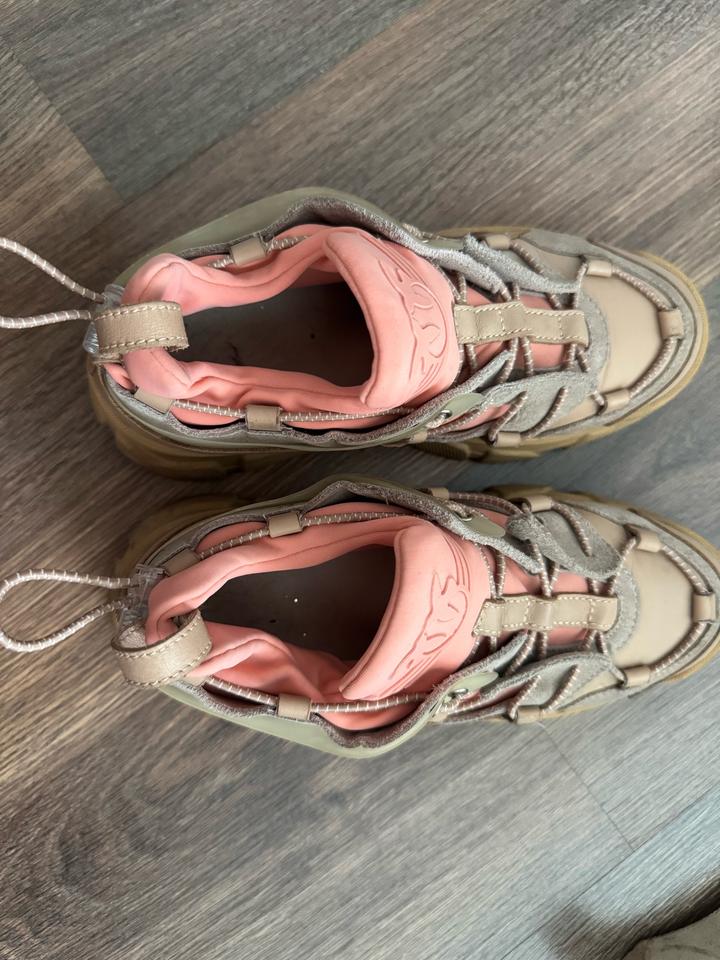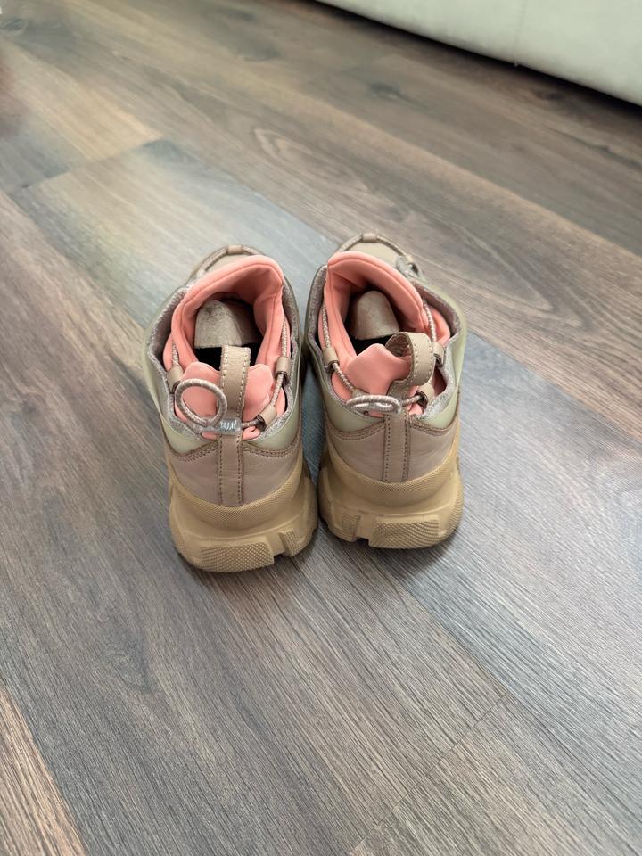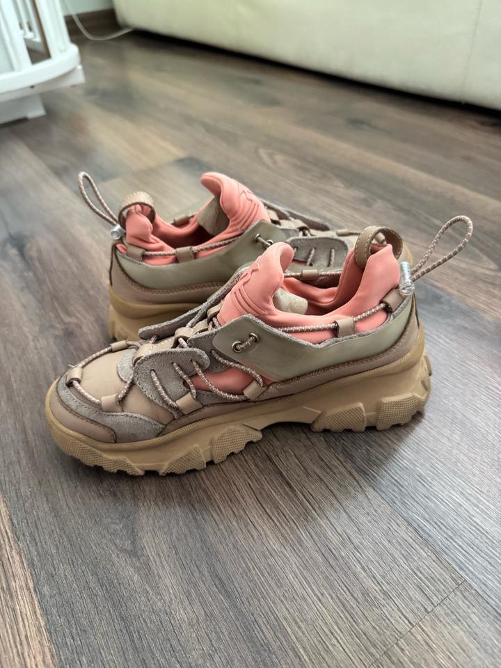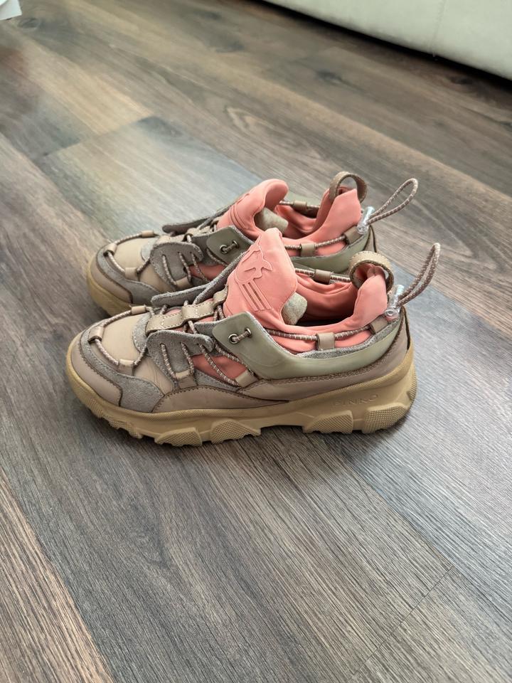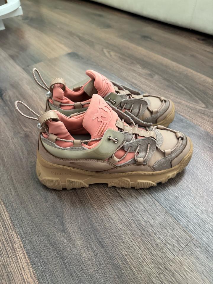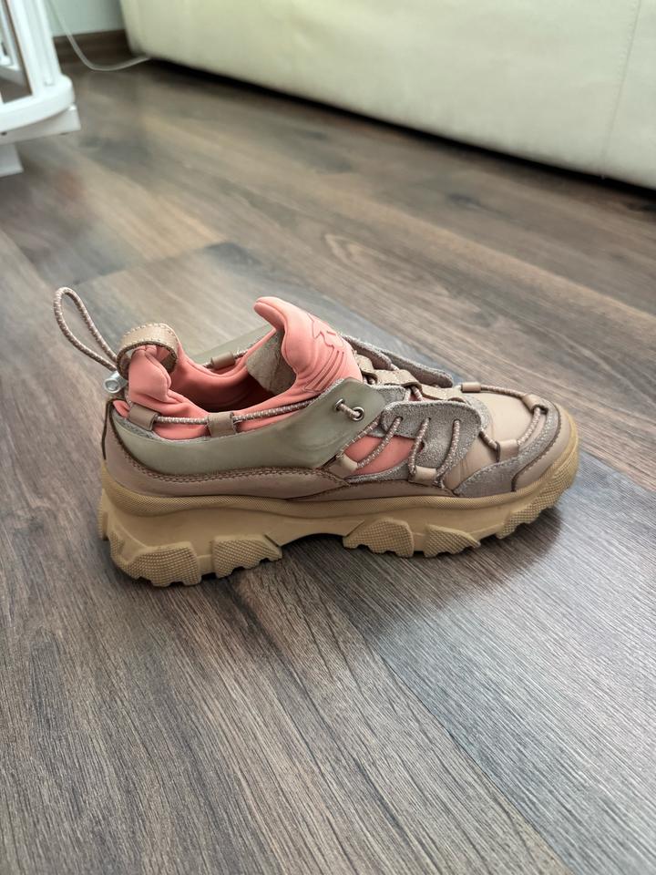 Кожаные кроссовки Pinko 36 размера. Оригинал, есть фирменный пыльник. Состояние хорошее. Есть небольшие потертости на коже. Бежевая кожа с оранжевыми текстильными элементами, стелька кожаная. Торг есть реальному покупателю. Артикул: 544507