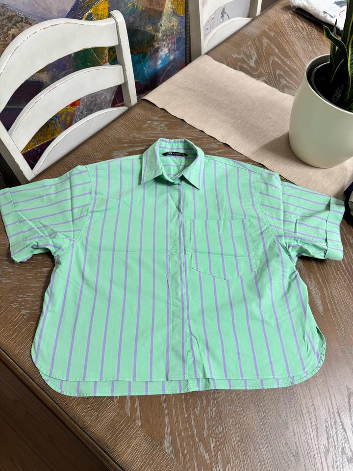 Пижамный костюм Zara, рубашка свободного кроя, брюки на резинке, не лето идеальный вариант, надевала пару раз, в отличном состоянии, размер М, подойдет на S-M Артикул: 544558
