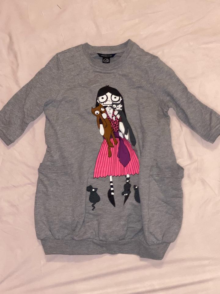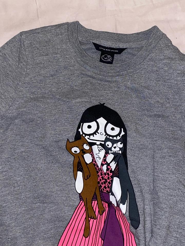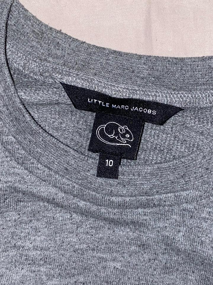 Бренд: Little Marc Jacobs (оригинал). Размер: 10 лет (на рост примерно 138–142 см). Материал: Плотный хлопок (футер), приятный к телу серый меланж. Детали: Длинный рукав на манжетах, круглый вырез, два удобных боковых кармана (видно на фото), фирменный дизайнерский принт. Артикул: 544589