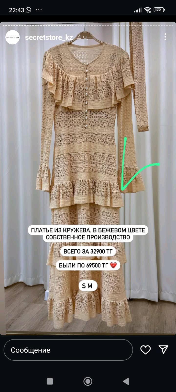Кружевное платье Secret store😍 Размер M Пуговицы из жемчуга 😍 Цвет бежевый Новый с этикеткой 🔥 Артикул: 544734