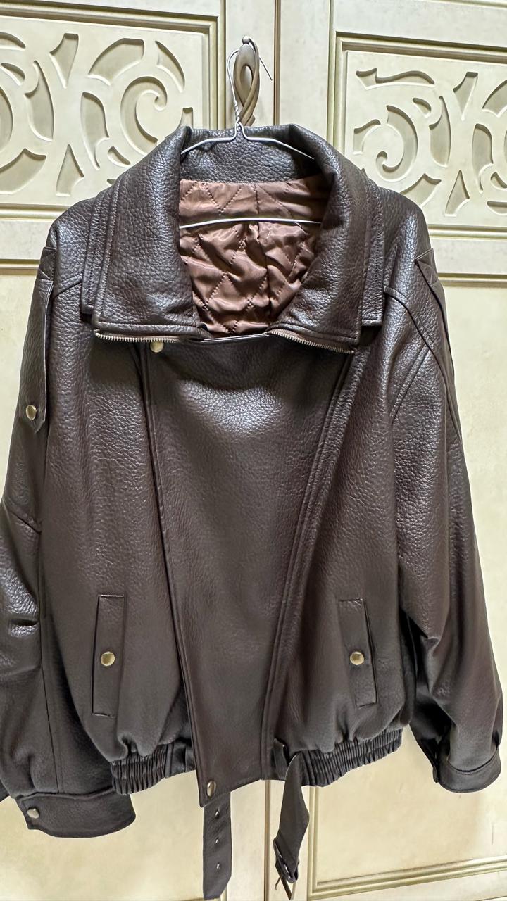 Шикарная кожанка Цвет шоколад Теплый подклад внизу Размер до ХЛ подойдет Артикул: 544810