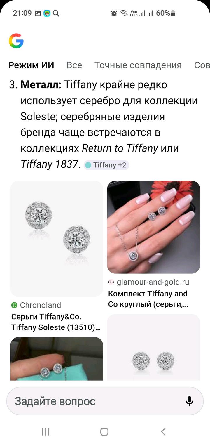 Камни играют светом, копия набора от Tiffany Soleste. Артикул: 544909