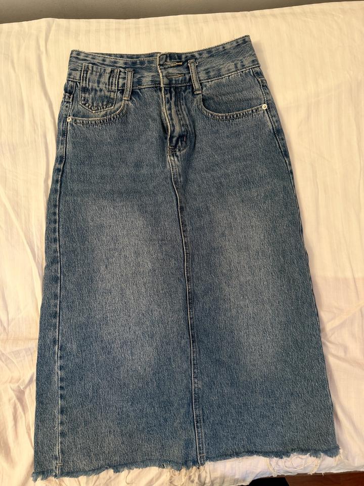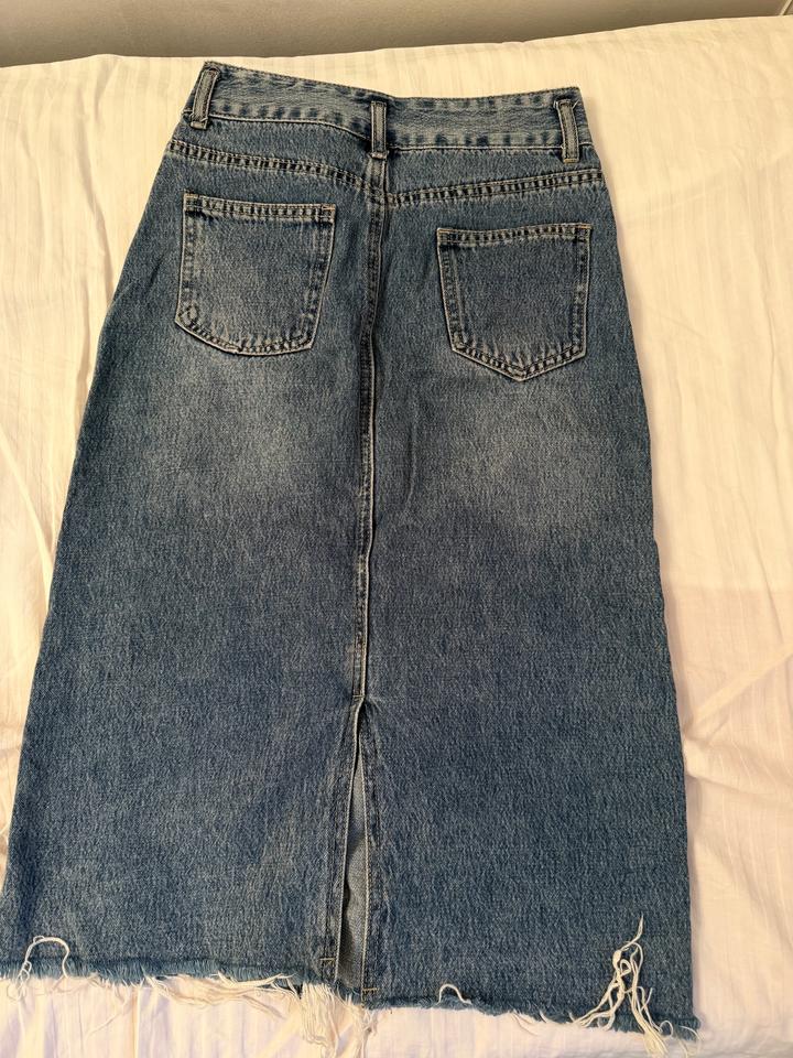 Джинсовая юбка, размер: 42. Цвет: синий. Длина: чуть ниже колена (на рост 160см). С вырезом сзади. Состояние: как новая. Артикул: 544967
