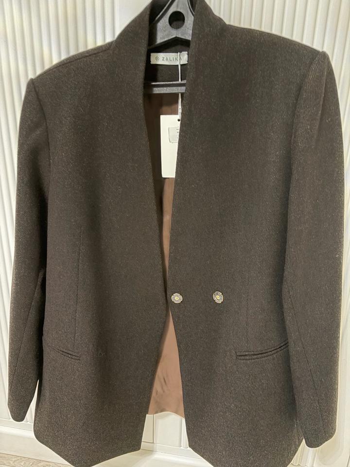 Продам женский пиджак-пальто шерсть. Отличного пошива. Размер 46-48. Новый покупала на выставке. Цвет темно коричневый. Можно сделать поуже и по свободнее так как две пуговицы. Артикул: 545010