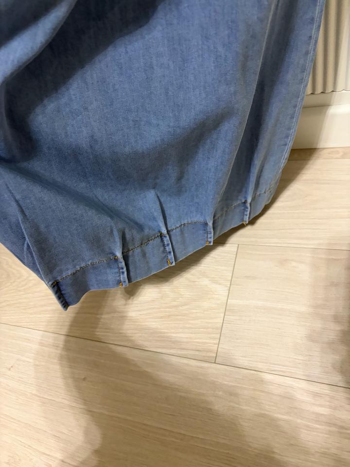 Продам юбка брюки или палаццо кто как видит. Тонкая джинса на лето. Покупала но так и не носила. Этикетка сорвана. Резинка очень мягкая. Подойдет до 48 размера. Артикул: 545034