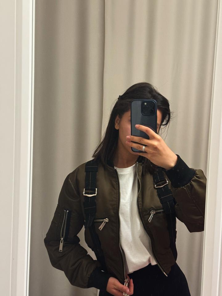 Куртка-бомбер в стиле Размер 40 Состояние отличное Стильная модель с ремнями, плотная ткань Артикул: 545094