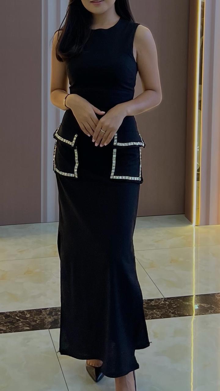 Черное платье. Покупала в магазине garderob.showroom, в г. Астана. Надевала один раз, на свадьбу подруги. На размер XS. Все камушки на месте. Артикул: 545125