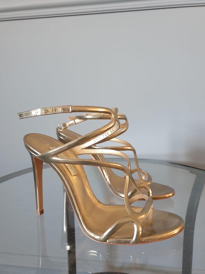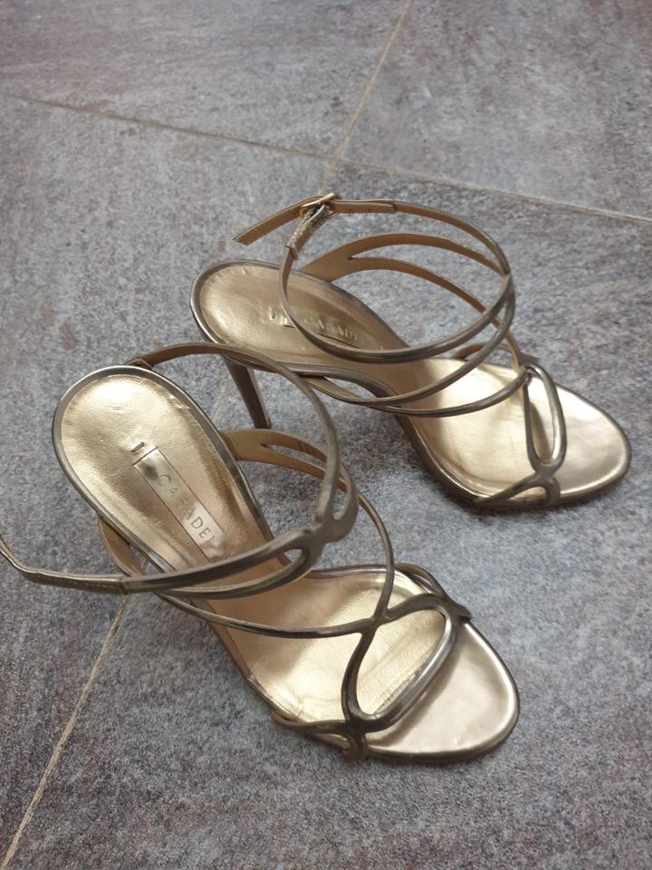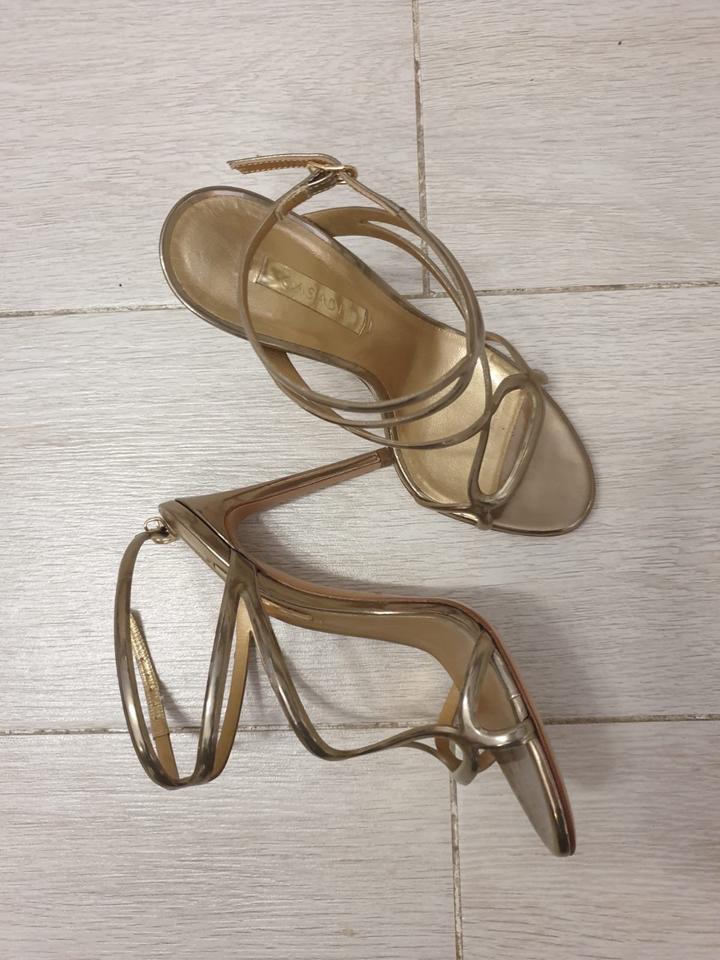 Эффектные дизайнерские босоножки Casadei в оттенке тёплого золота. Изящные тонкие ремешки создают архитектурный силуэт, красиво обрамляют стопу и визуально вытягивают ногу. Идеальны для: — вечерних выходов — мероприятий и праздников — съёмок и особых случаев Состояние: отличное, надевались 2–3 раза. Есть лёгкие следы носки на стельке (не заметны при носке) Артикул: 545173