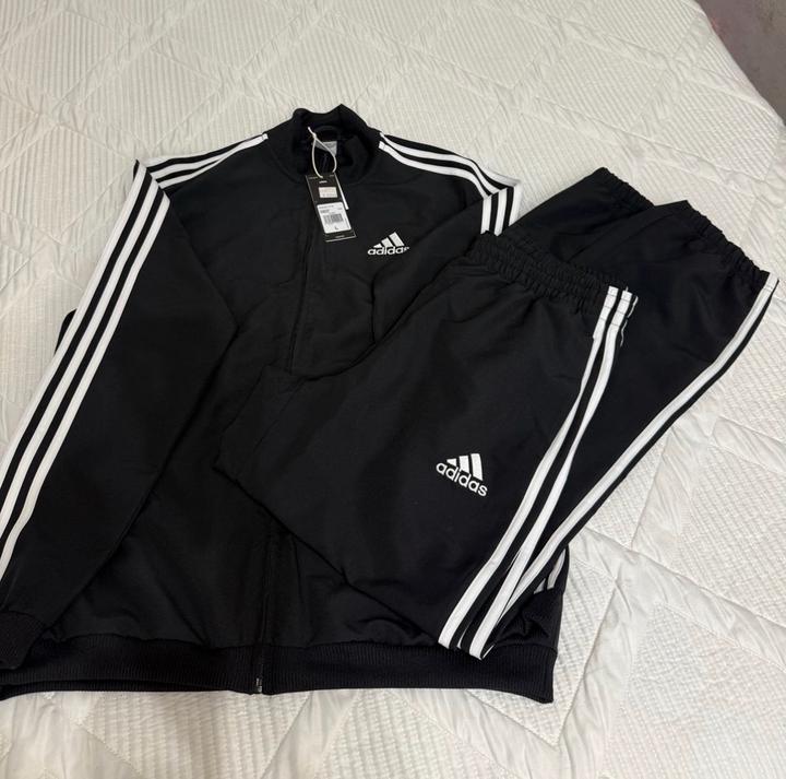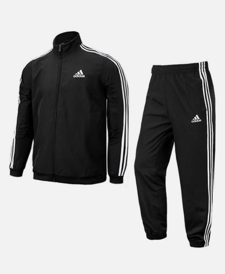 Спортивный костюм adidas. Ткань эффективно отводит влагу, обеспечивая комфорт во время тренировок или повседневной носки. Дизайн: Классический крой с воротником-стойкой, застежкой на молнию и манжетами на рукавах. Детали: Фирменный логотип adidas на груди и три белые полоски вдоль рукавов. Артикул: 545213