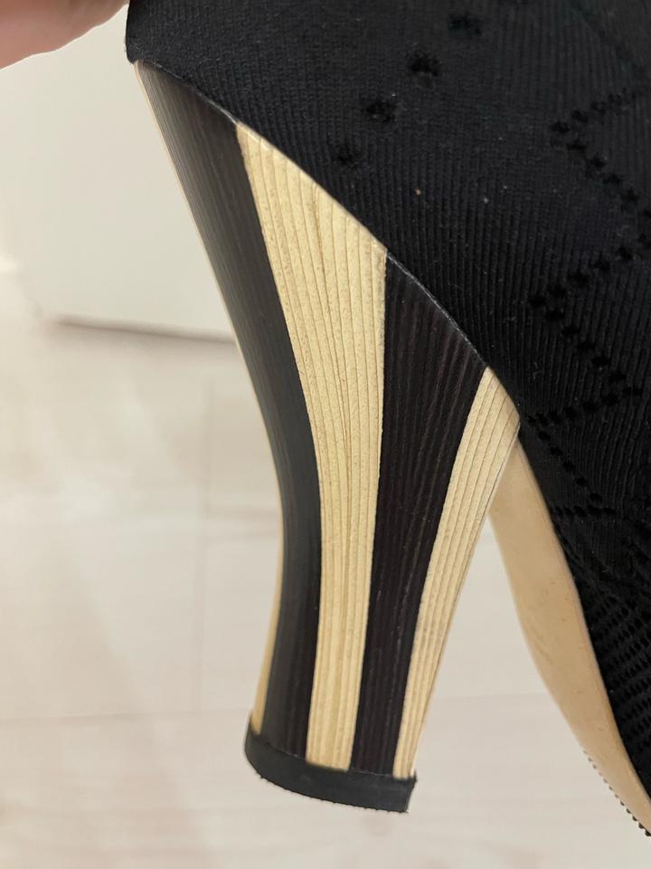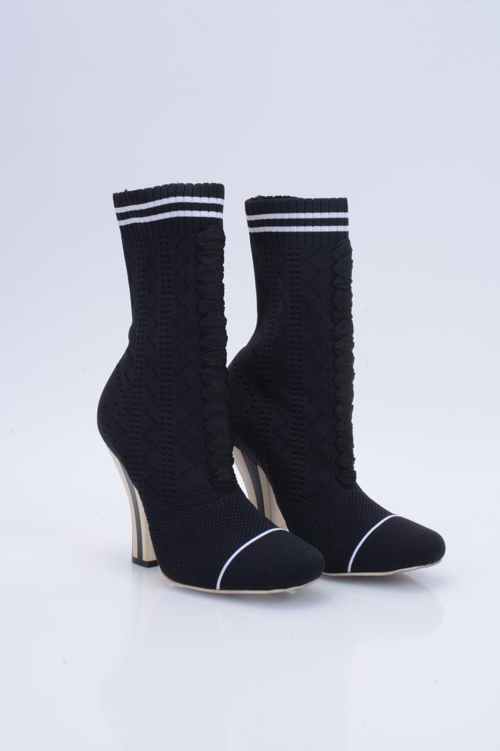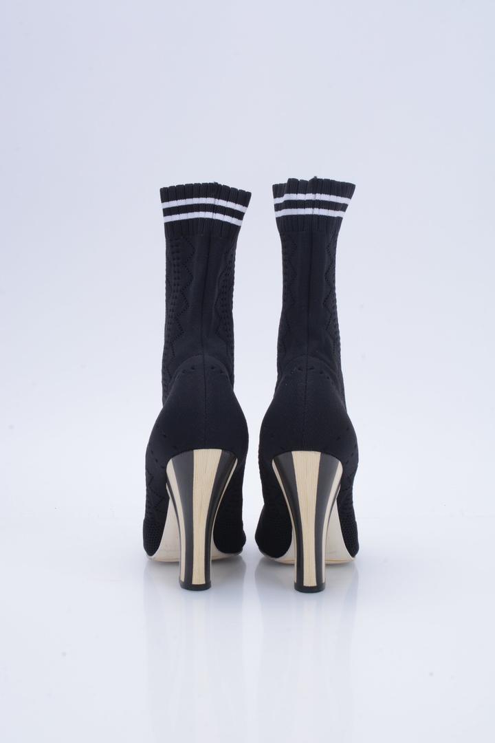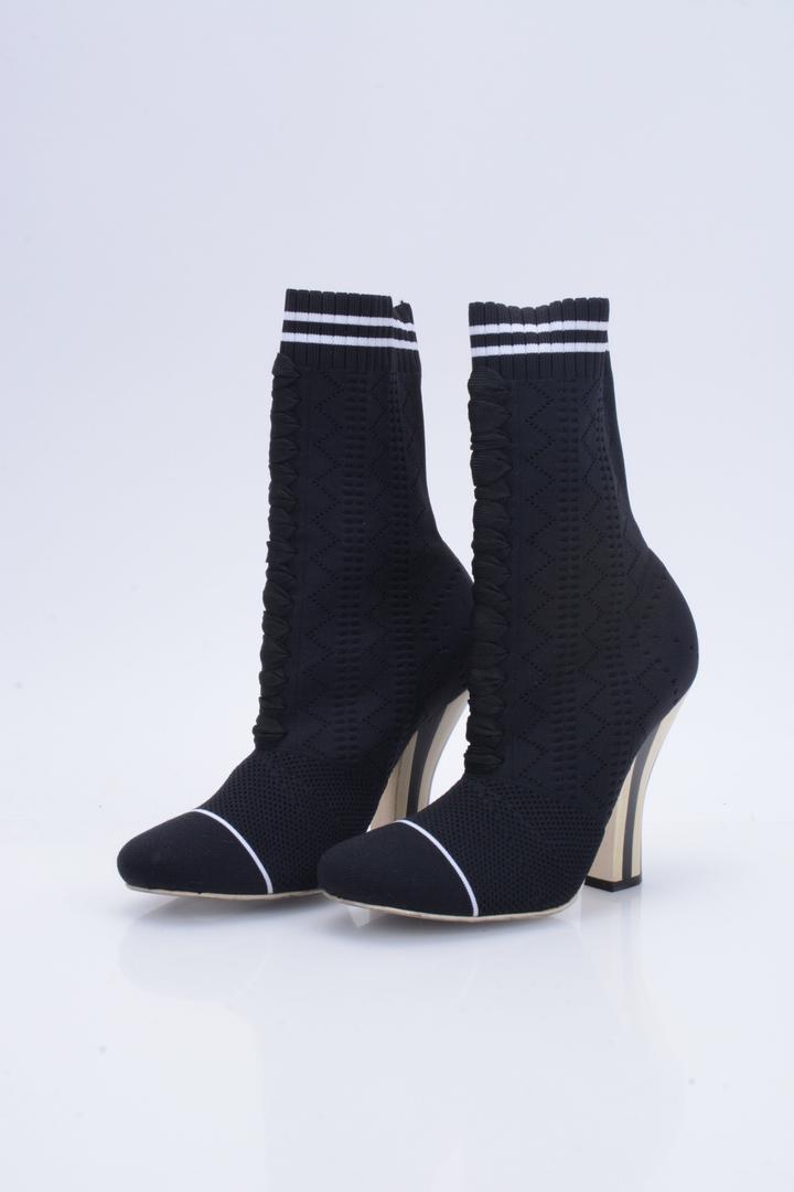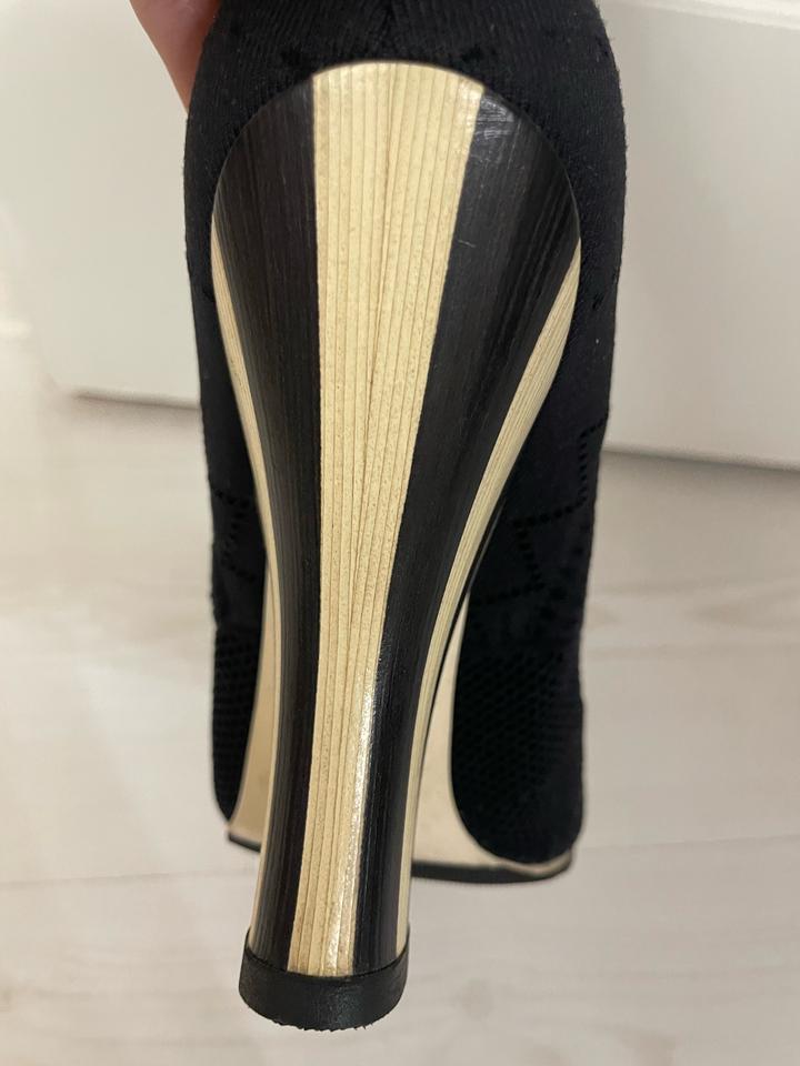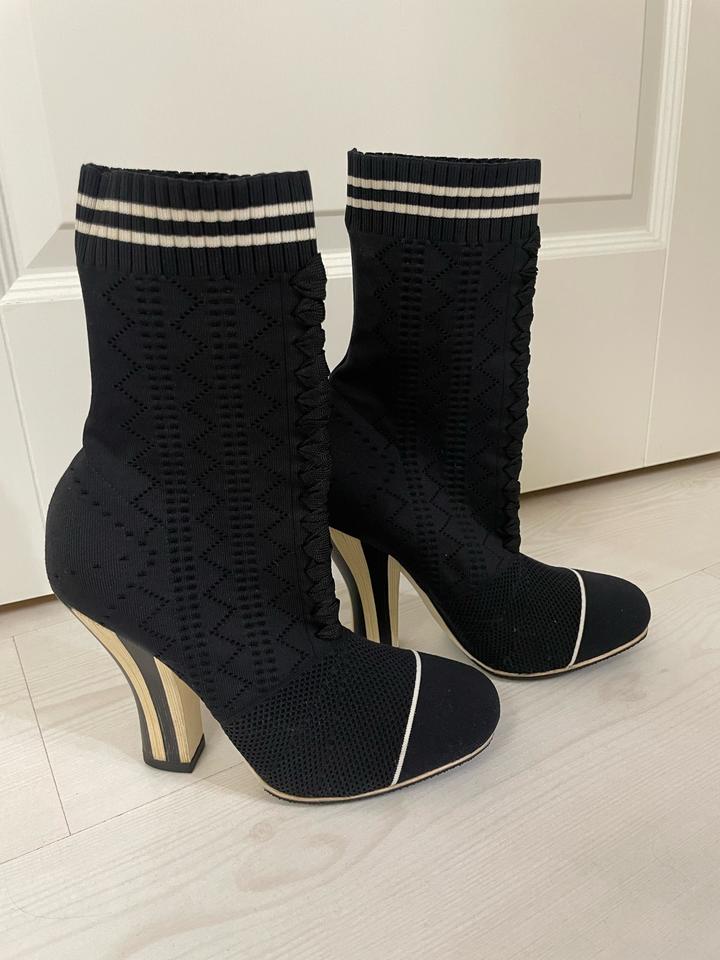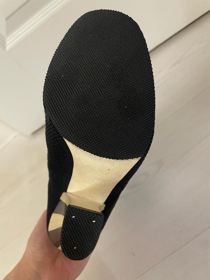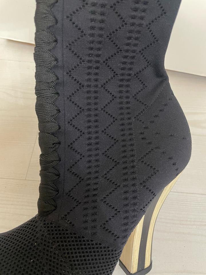 Fendi Black Knit Fabric Rockoko Runway Openwork Ankle Boots. Элегантные ботильоны Fendi на высоком каблуке.Установлена деликатная профилактика. •внешний материал: текстиль •материал стельки: натуральная кожа •без застежки •фигурный каблук •круглый носок •фирменная упаковка не включена •Высота каблука 11 см •Длина стельки 24.3 см Состояние идеальное Оригинал Артикул: 545560