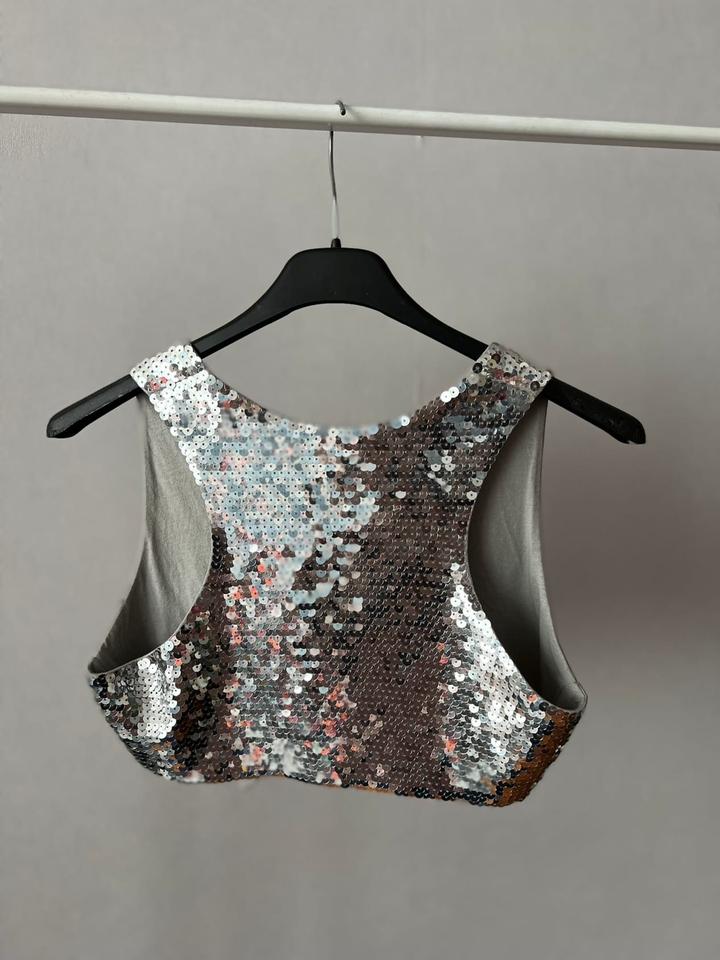 Блестящая жилетка Bershka, в идеальном состоянии. Очень стильная и необычная. Размер М, маломерит на С. Артикул: 545583