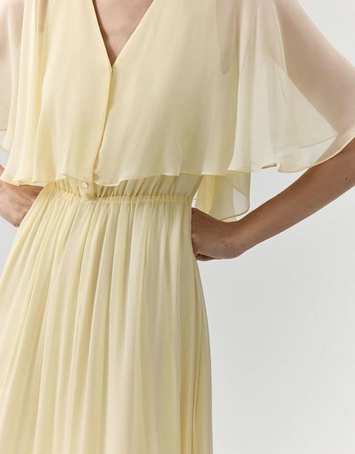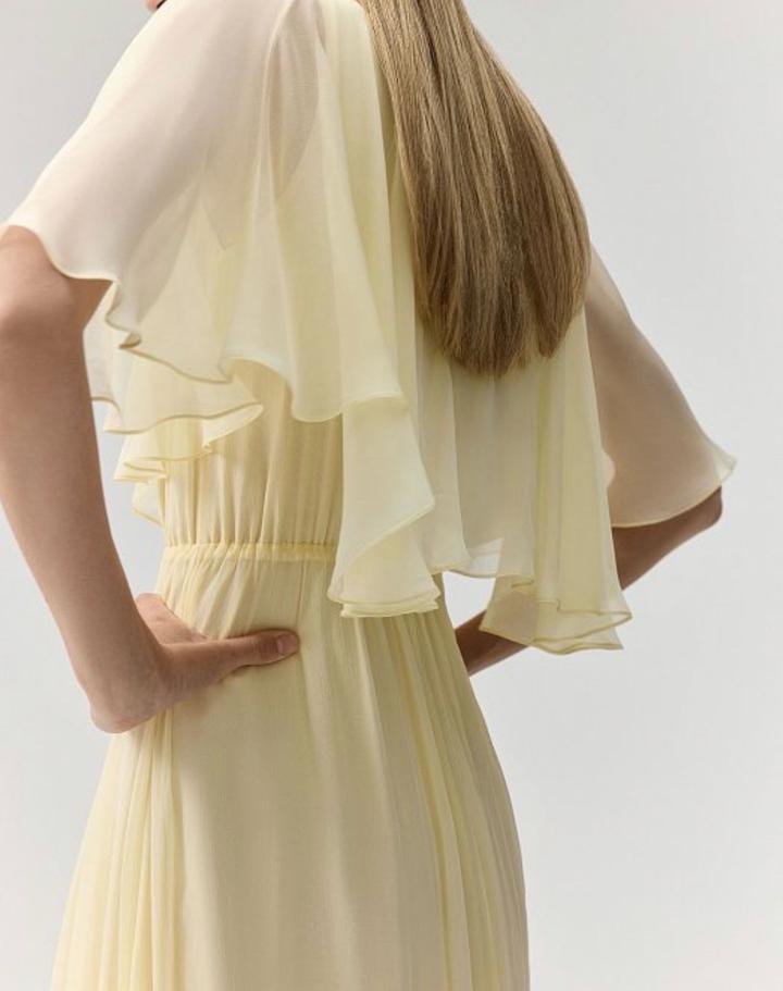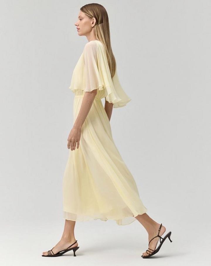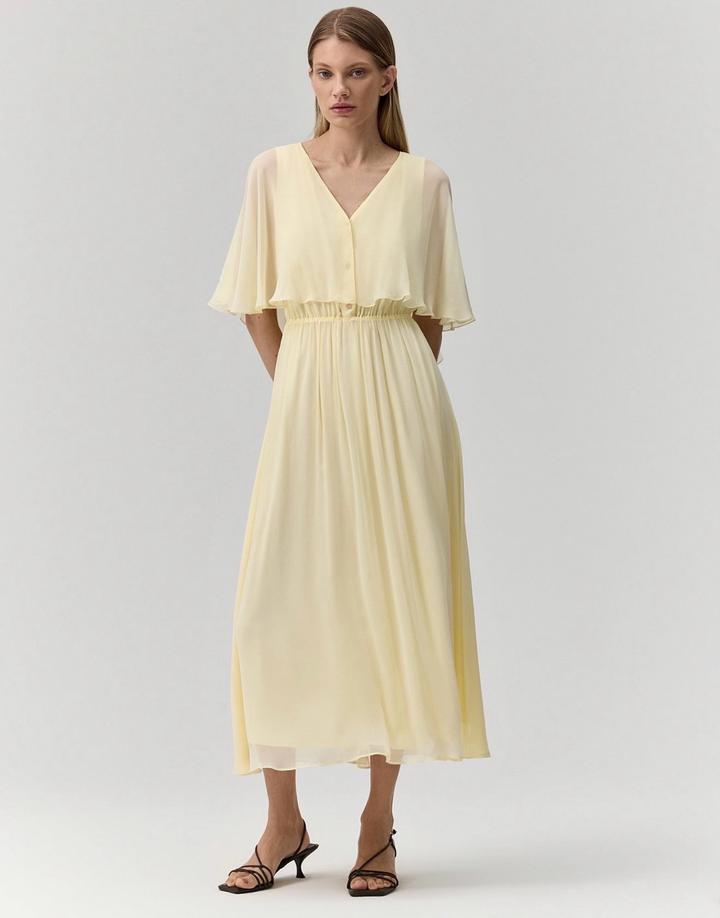 Состав: 100% Вискоза Шифоновое платье-миди пригодится для особых поводов и на каждый день. Прозрачный текстиль невесомо струится вдоль тела, а комфортная подкладка из вискозы предотвращает просвечивание. Мягкий и воздушный силуэт платья сочетается с легкой пелериной. Ленту из комплекта можно завязать на пояс или использовать для декора. Рост модели 175 см Платье новое без этикетки Артикул: 545650