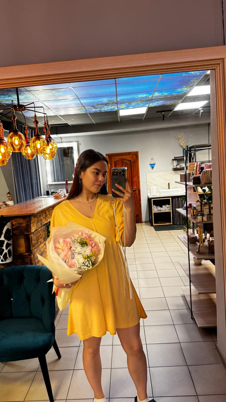 Платье Бренда Mango В приятном желтом оттенке Хлопковый материал Размер-М Артикул: 545770