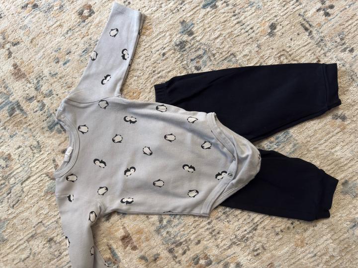 Боди с пингвинами и штанишки черного цвета Артикул: 545792