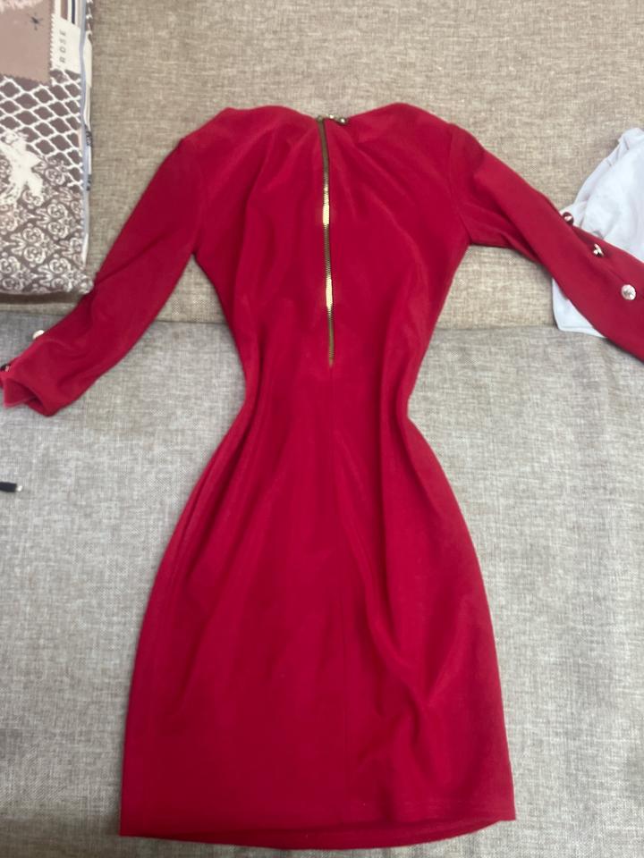 Красное мини-платье с замком сзадиS