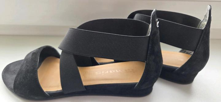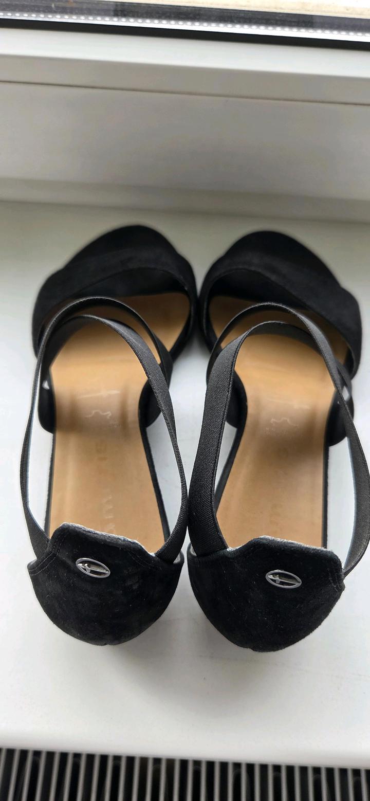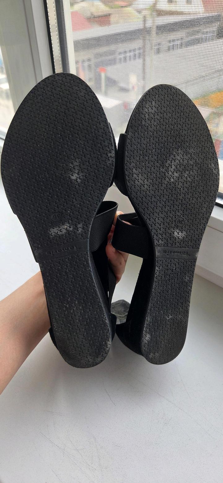 Женские сандалии Tamaris, чёрного цвета, 36 размер из натуральной замши. Состояние хорошее. Артикул: 545931