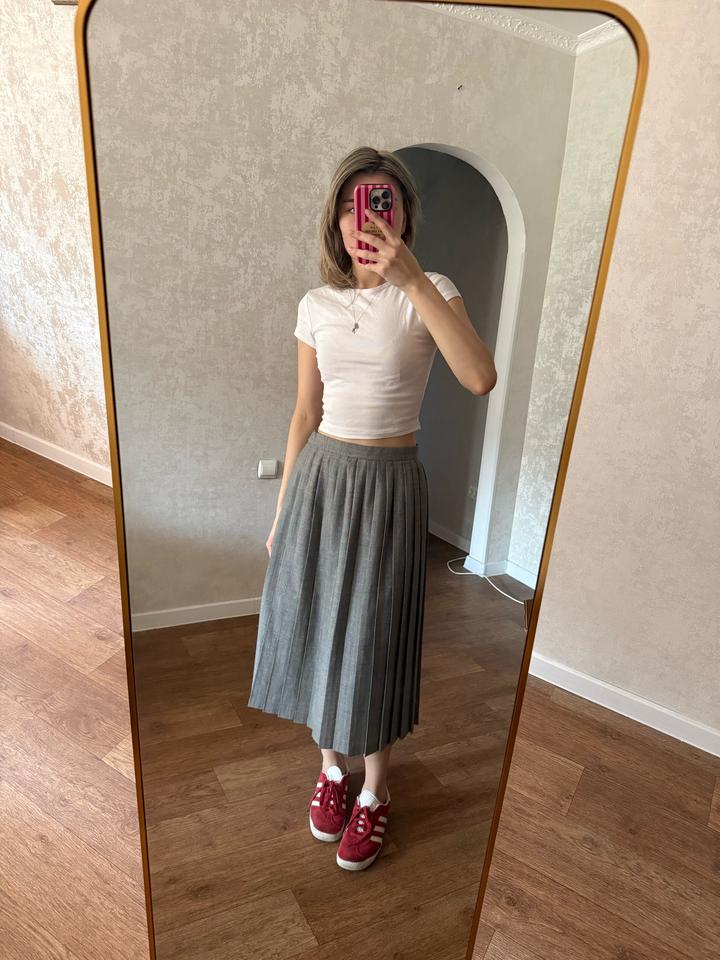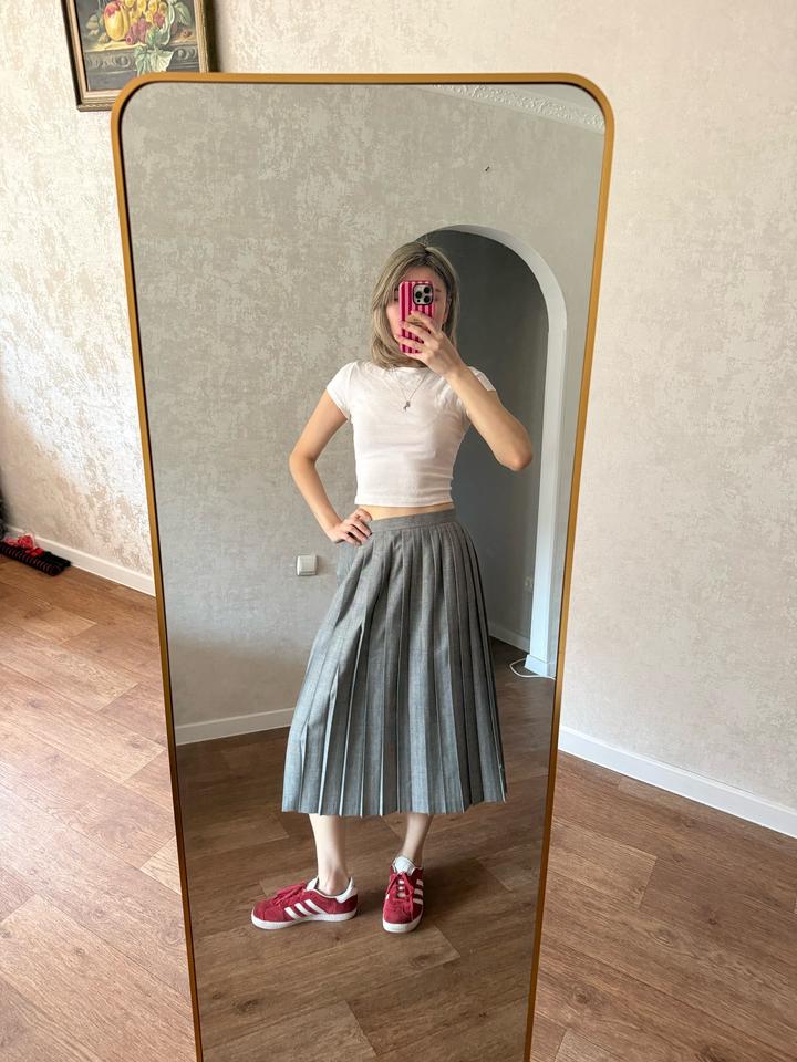 Юбка производства Япония, в составе шерсть, миди длины в клетку серого цвета, размер XS-S. Разумный торг уместен Артикул: 545932