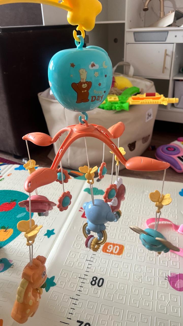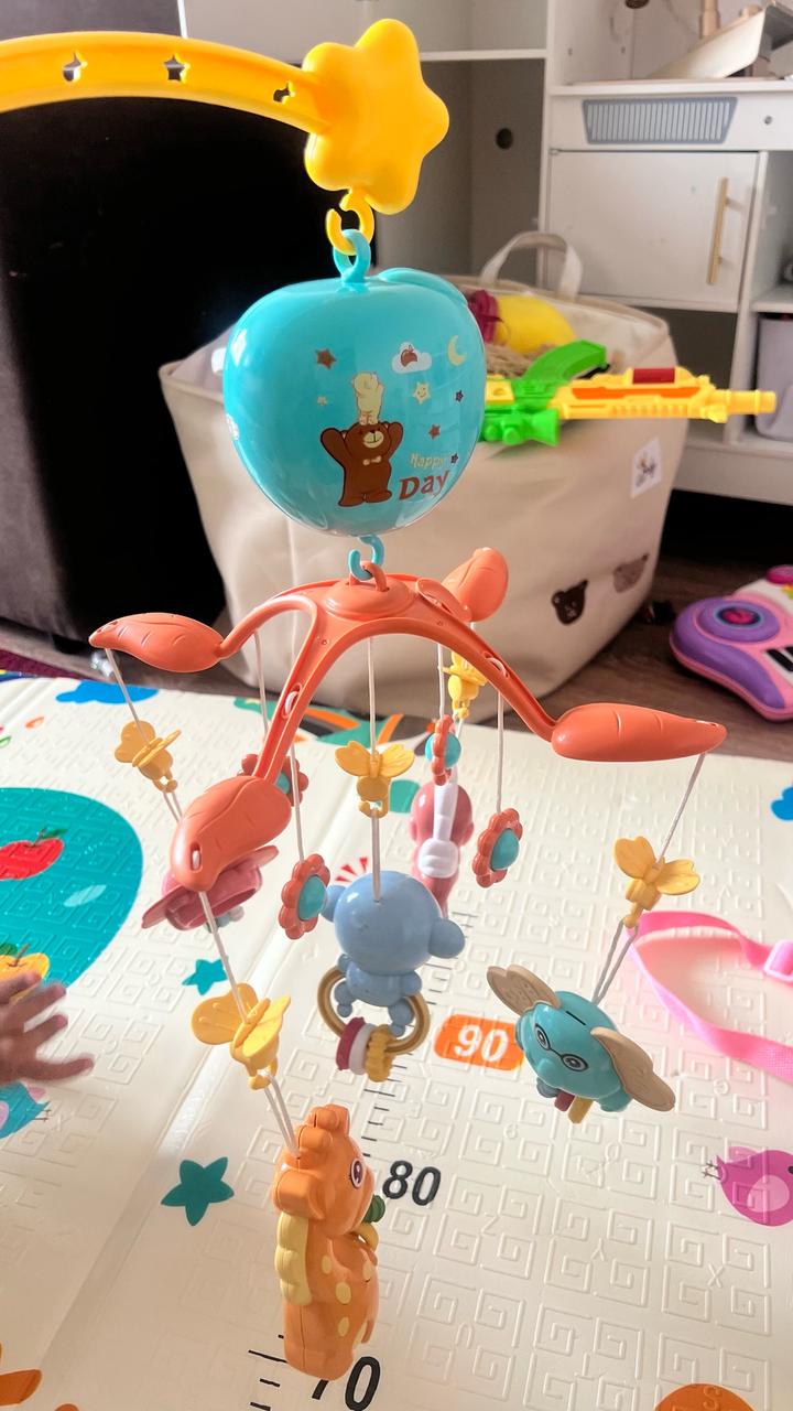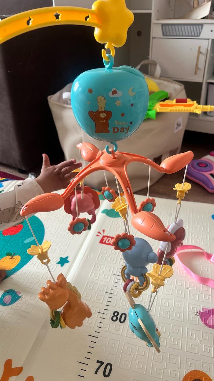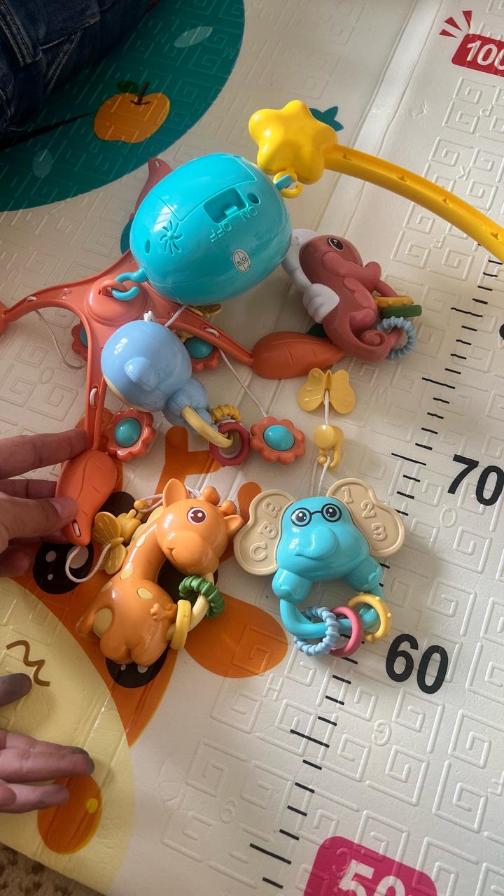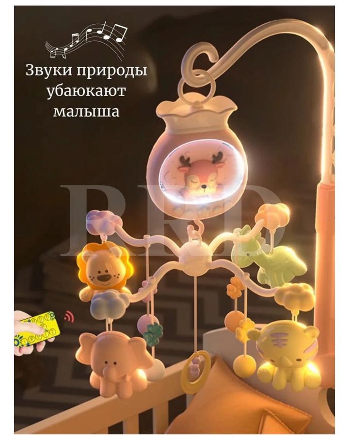 С рождения можно использовать, есть фонарик, светильник ночник с проекцией звездное небо, игрушки вращаются на 360, на пульте управления, есть белый шум, звуки природы и колыбельная Артикул: 546128