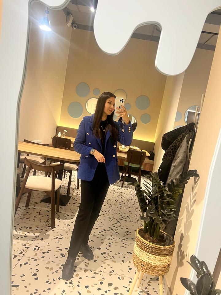 Синий твидовый пиджак, Турецкий, размер 42-44, отличного качества Артикул: 546133