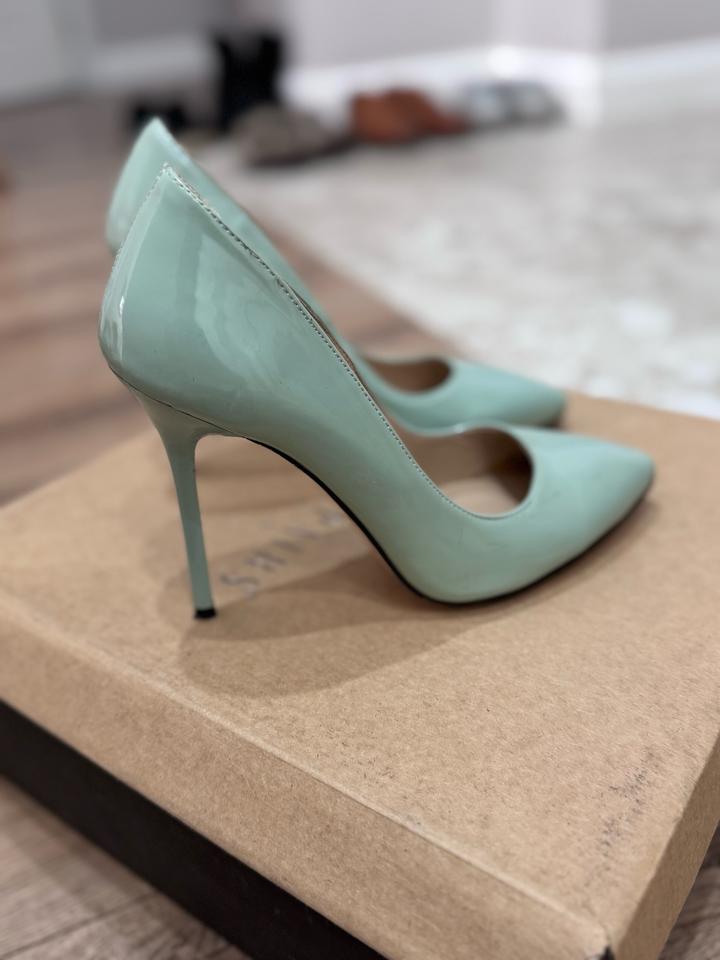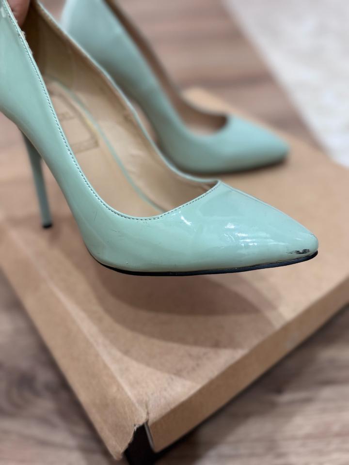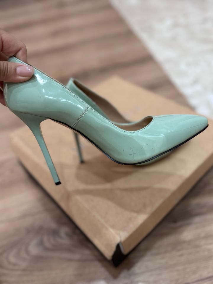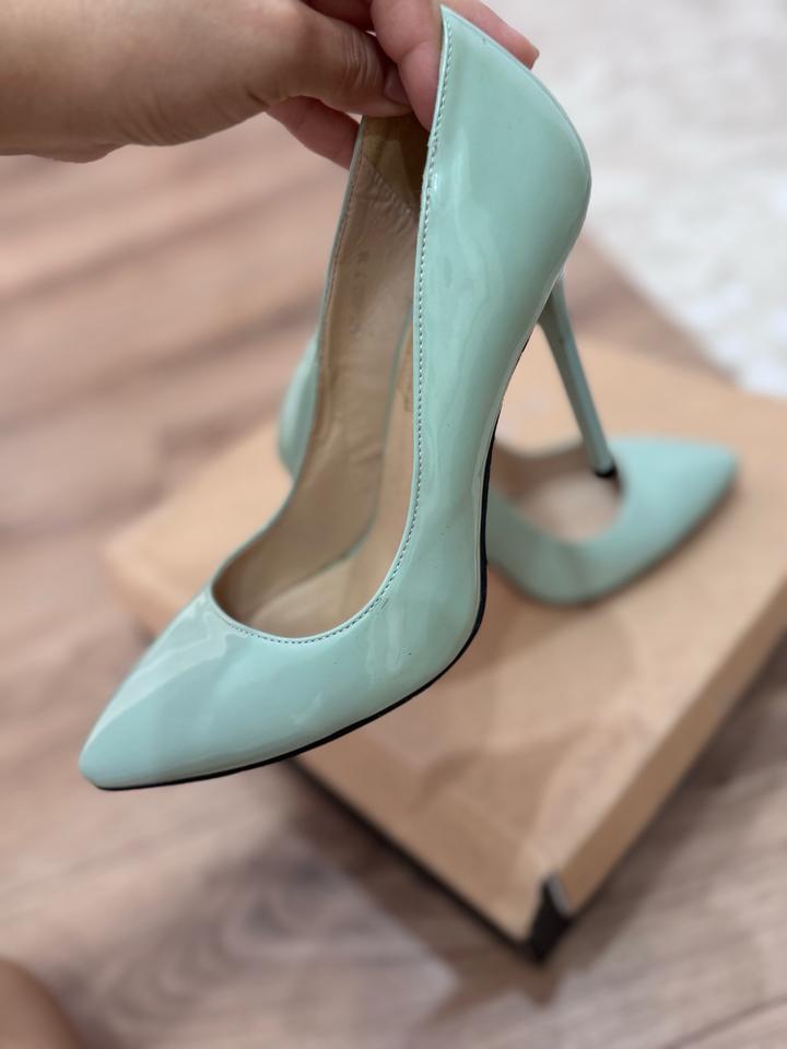 Стильные лодочки с острым носом в нежном мятном оттенке- идеальный вариант для создания женственного и утончённого образа. Лаковая поверхность красиво блестит и выглядит дорого, а высокая шпилька визуально удлиняет ноги и делает силуэт более изящным. Артикул: 546242