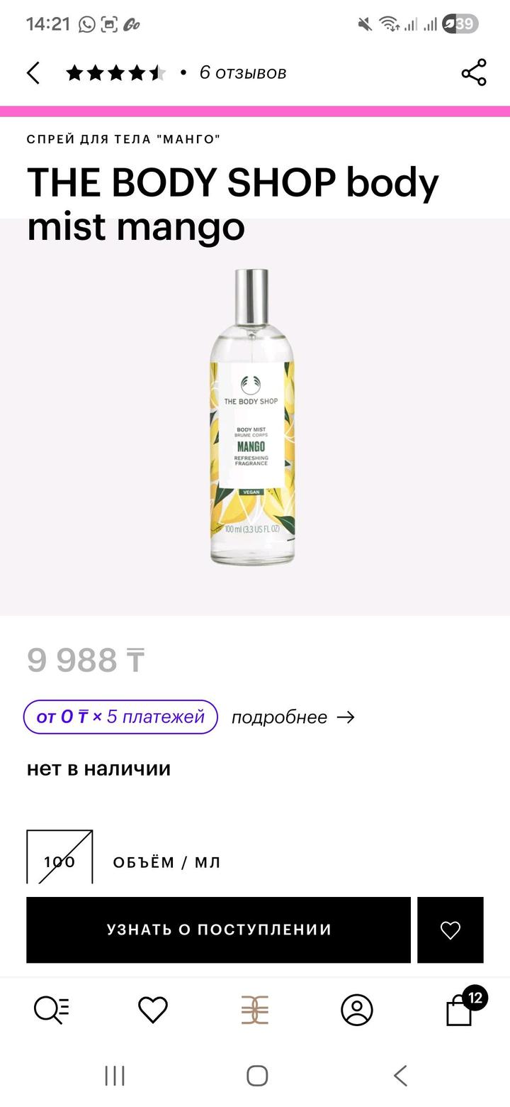 THE BODY SHOP body mist mango очень натуральстичный спрей для тела, на 9+7### ### ## ##го манго. Покупала в зя не хватает 10мл Артикул: 546358