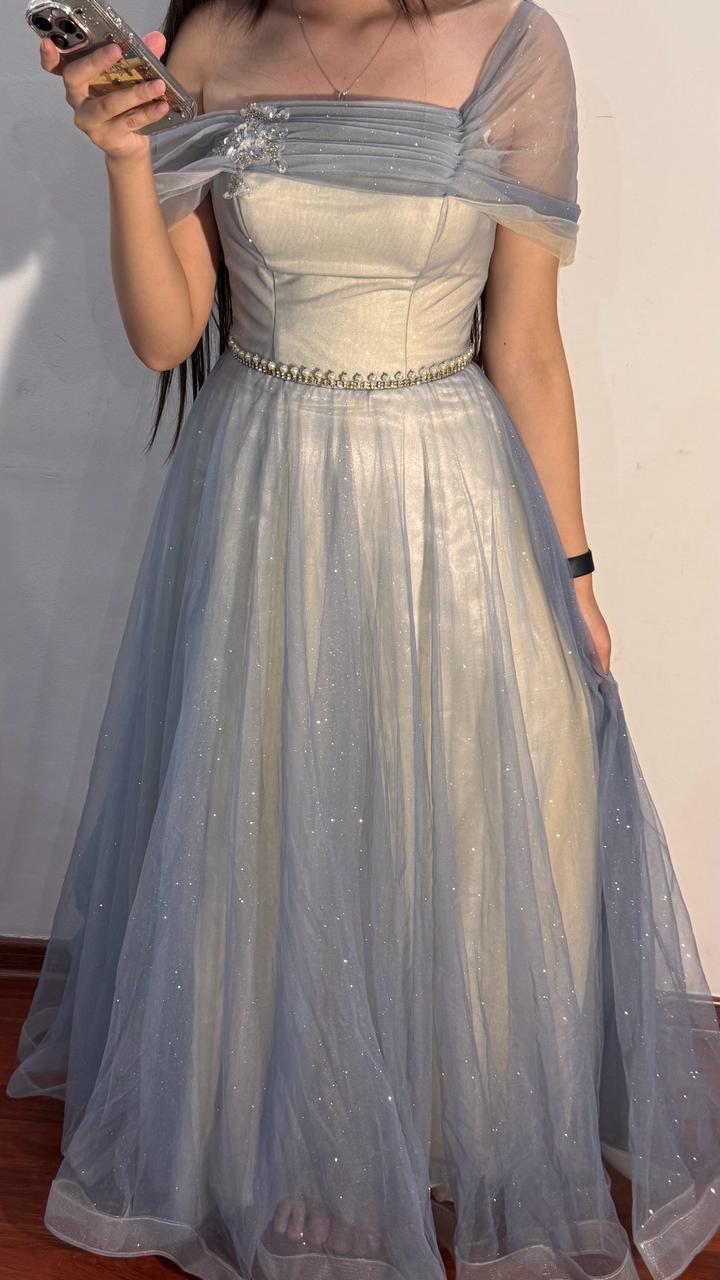 Элегантное выпускное платье нежного голубого цвета с легким мерцанием. Надевалось только один раз, в идеальном состоянии. Верх платья украшен блестящими деталями, а на талии – изящный пояс, придающий особую изысканность. Платье свободного кроя с воздушной юбкой, которая придает образу легкость и романтичность. Подходит для выпускного вечера или любого торжественного мероприятия. ✨ Размер: [М-44-46] ✨ Цвет: нежный голубой с блестящими акцентами ✨ Состояние: как новое, без дефектов Артикул: 546395