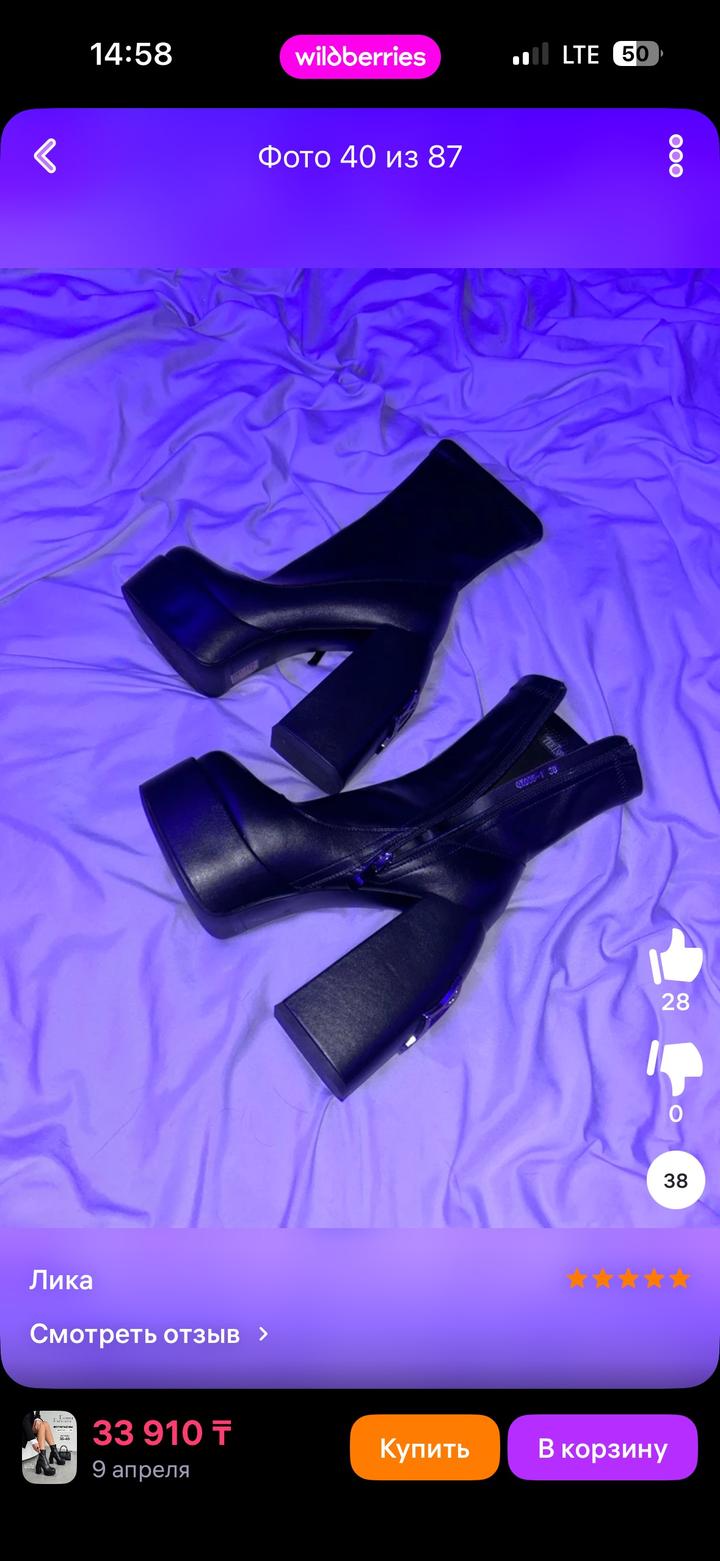 В идеальном состоянии, не разу не носились, заказывала через вб но передумала ХАРАКТЕРИСТИКИ ПРЕМИАЛЬНАЯ ЭКОКОЖА • ПЛАТФОРМА - 4,5 СМ • ТОЛСТЫЙ КАБЛУК - 14,5 СМ "ВОЛК" НА КАБЛУКЕ • МАТЕРИАЛ ПОДОШВЫ ТПУ Артикул: 546443
