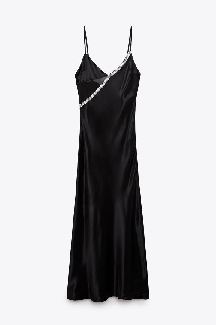 Черное, длинное, атласное платье от бренда Zara, со стразами в доль декольте и полупрозрачной черной сеткой. Подойдет миниатюрным девушкам. Приобреталось в Польше, с оригинального сайта Zara(имеется электронный чек). Носилось 2 раза. Состояние хорошее. Дефекты в зоне груди, имеется малозаметная затяжка. Отличное платье на вечер Артикул: 546486